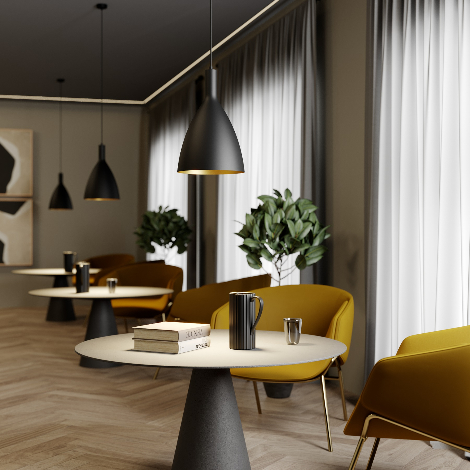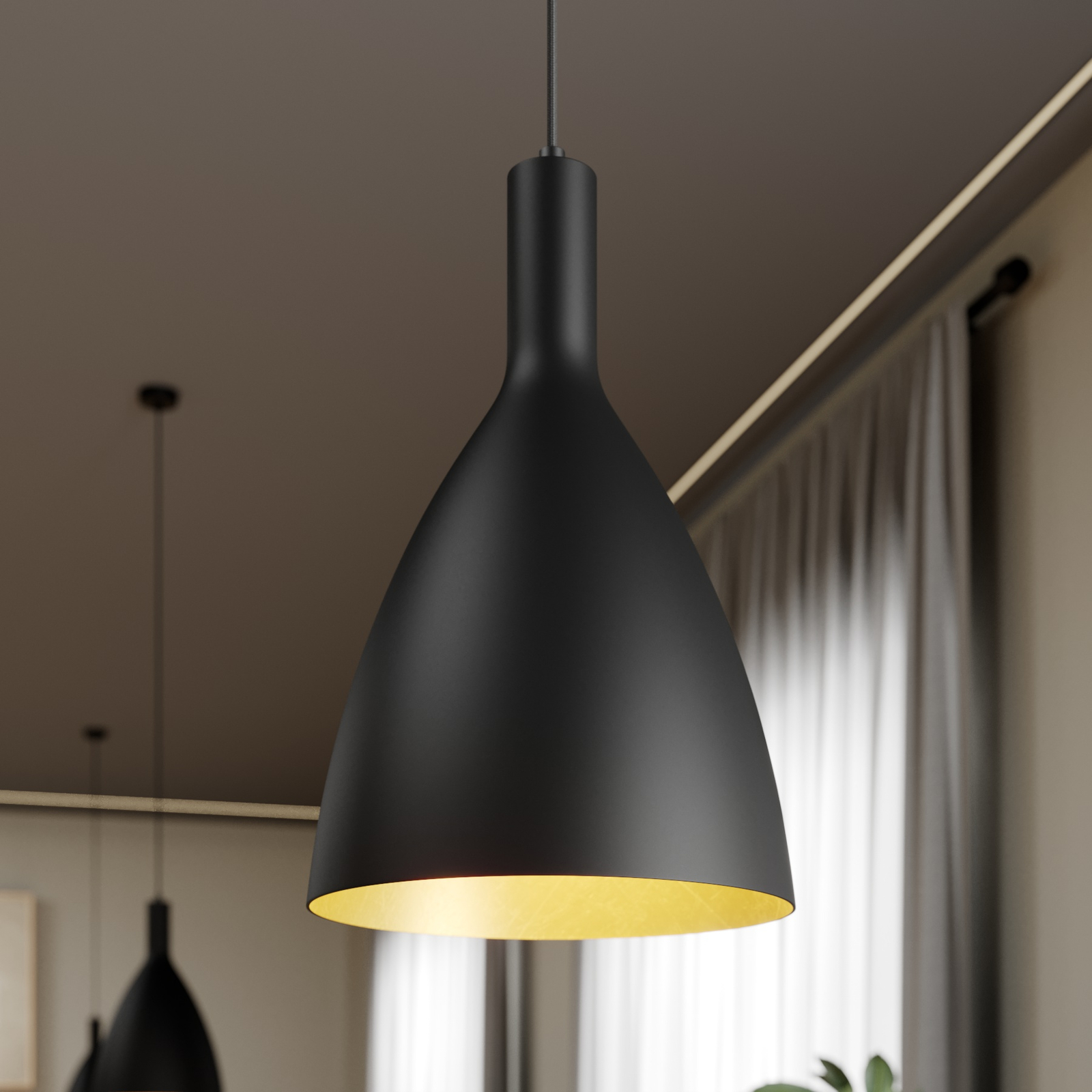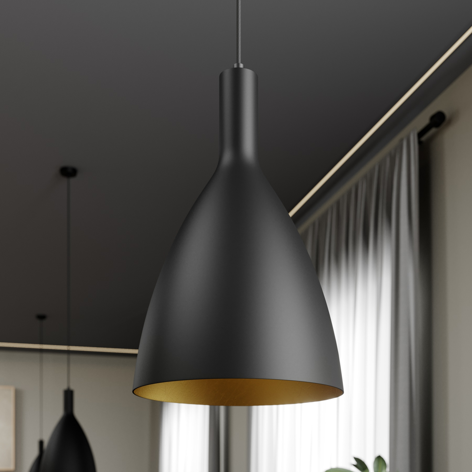 Arthuria on tyylikäs, pyöreänmuotoinen valaisin. Alaosastaan pyöreä varjostin kapenee ylöspäin ja kiinnittyy lopulta kangasripustimeen. Varjostimen materiaalina on valoa läpäisemätön teräs, jonka ulkopinta on musta ja sisäosa kullanvärinen. Tämä muodostaa kauniin kontrastin, ja kullansävyinen sisäosa antaa myös erittäin lämpimän ja miellyttävän valaistuksen. Pelkistetty ja moderni riippuvalaisin sopii hyvin moderniin ja skandinaaviseen sisustustyyliin. Koska valo suuntautuu ensisijaisesti alaspäin, riippuvalaisin sopii erinomaisesti ruokapöydän yläpuolelle, jossa se valaisee alla olevan pöytäpinnan kirkkaasti mutta kodikkaasti.