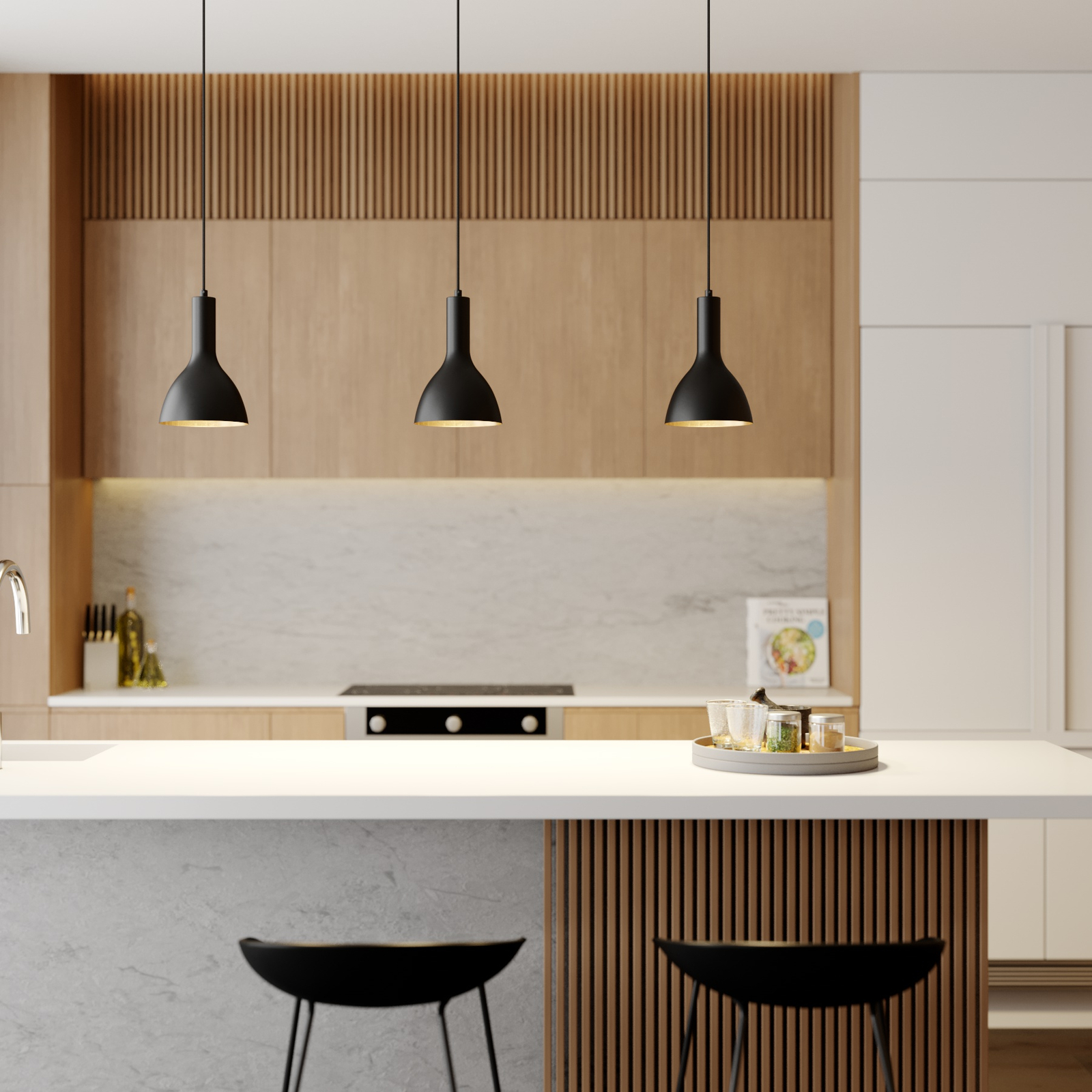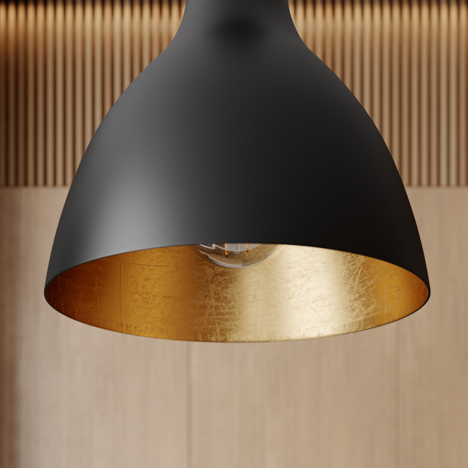 Cosmina-valaisin ihastuttaa modernin hienostuneella muotokielellään, joka sopii hienosti moderniin sisustustyyliin. Valaisimessa on teräksinen varjostin, joka kapenee yläosastaan putkimaiseksi ja kiinnittyy lopulta ripustimeen. Koska metalli on valoa läpäisemätön materiaali, riippuvalaisimen valo suuntautuu pelkästään alaspäin. Valaisin sopii siten hyvin pöydän yläpuolelle, jossa se valaisee alla olevan pinnan häikäisemättömästi. Varjostimen sisäosan kullan sävy tuottaa miellyttävän lämpimän valaistuksen.