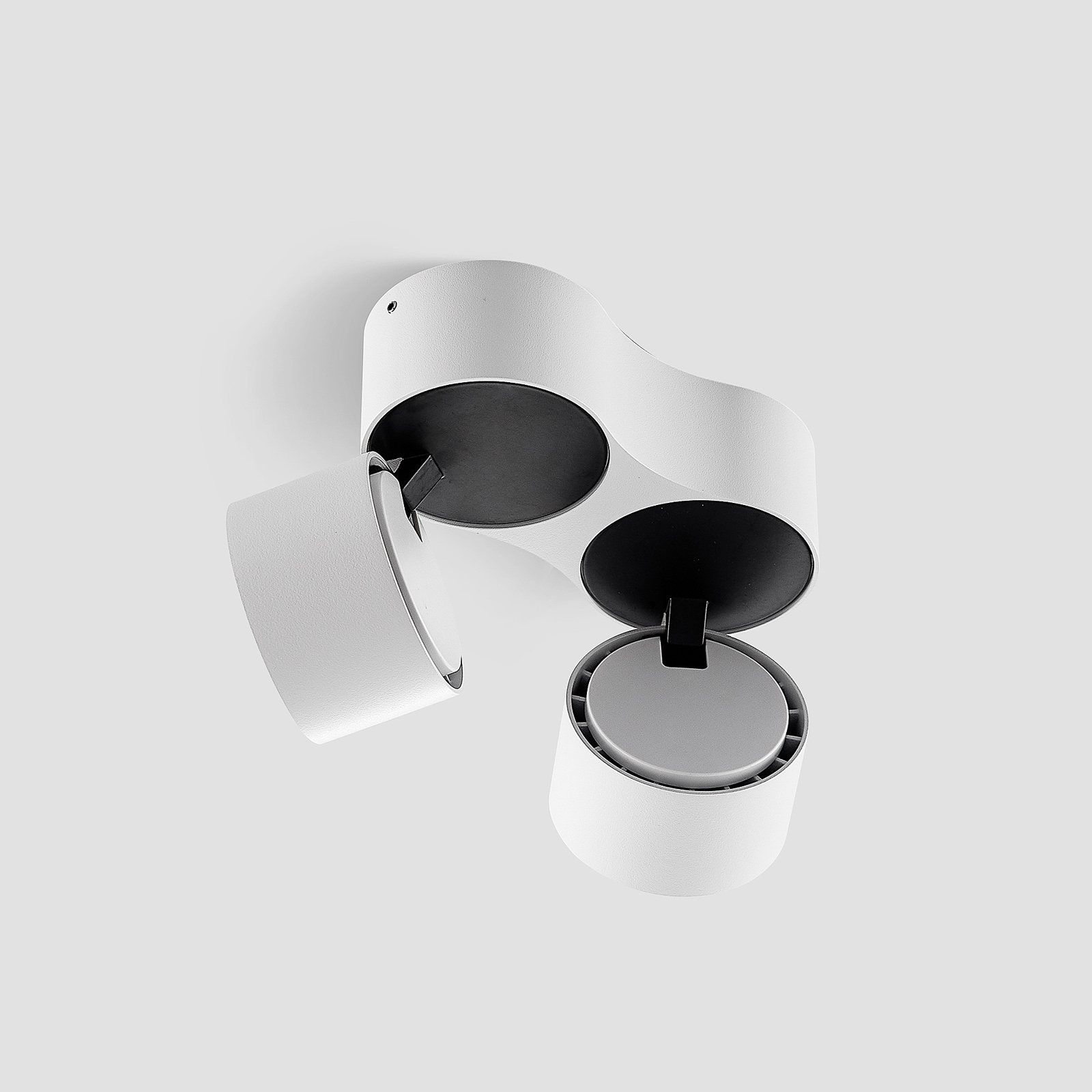 Kaksilampullisessa Rotari LED-kattovalaisimessa on alumiinista valmistettu kotelo, jonka keskellä on sisäänrakennettu heijastin. Valaisimen sädekulma on 34°, ja se säteilee huoneeseen lämpimän valkoista valoa (3 000 K). Valaisimen CRI-arvo on > 90, joten sen värintoisto on korkea.