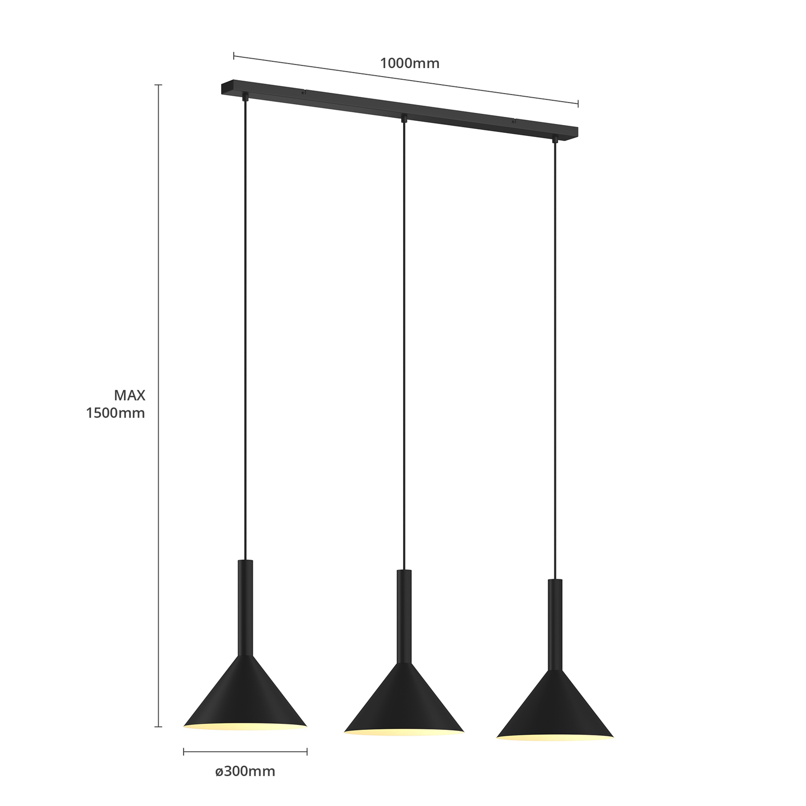 Arcchio Tadej -riippuvalo 3-lamp., Musta-valk.