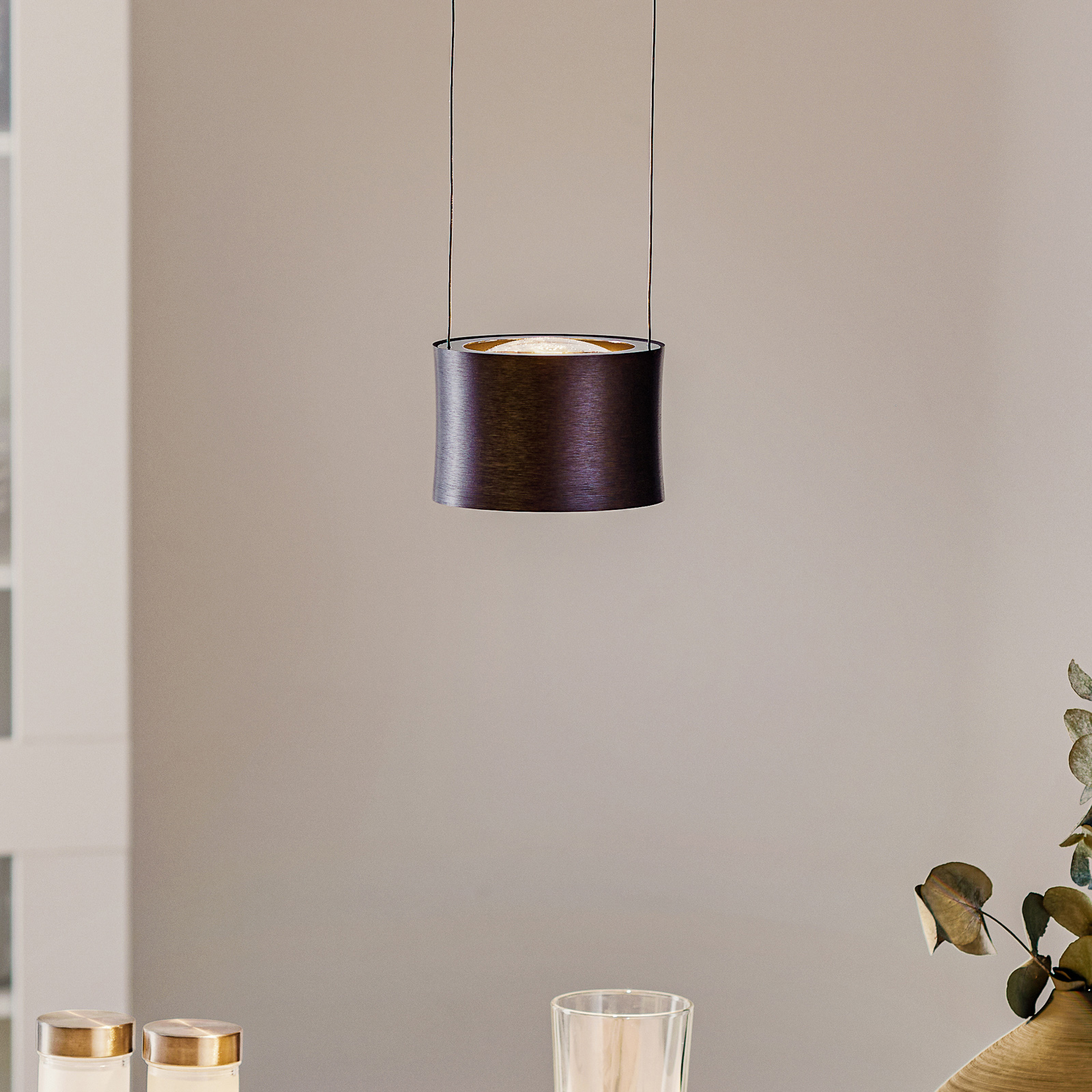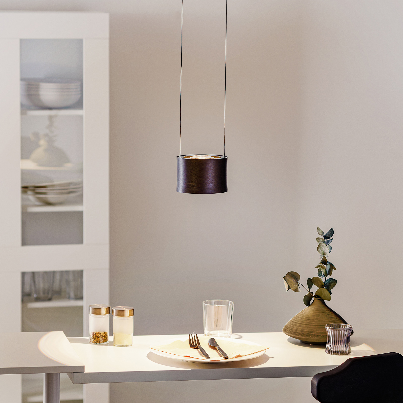 Impulse LED-riippuvalaisin tuo muodikkaan väriläiskän – olipa kyseessä keittiö keittosaaren tai tiskin yläpuolella tai olohuoneessa ja ruokailutilassa. Sekä pyöreä katos että lampunvarjostin on valmistettu mattaantrasiitista anodisoidusta metallista. Lämpimän valkoiset LEDit sylinterimäisessä varjostimessa säteilevät valoa sekä ylös- että alaspäin.