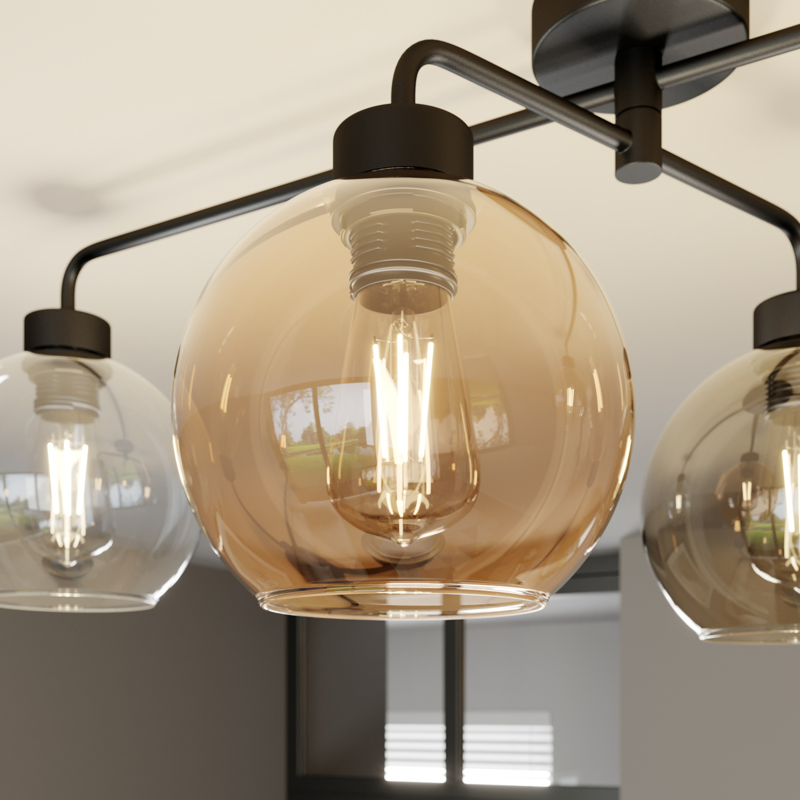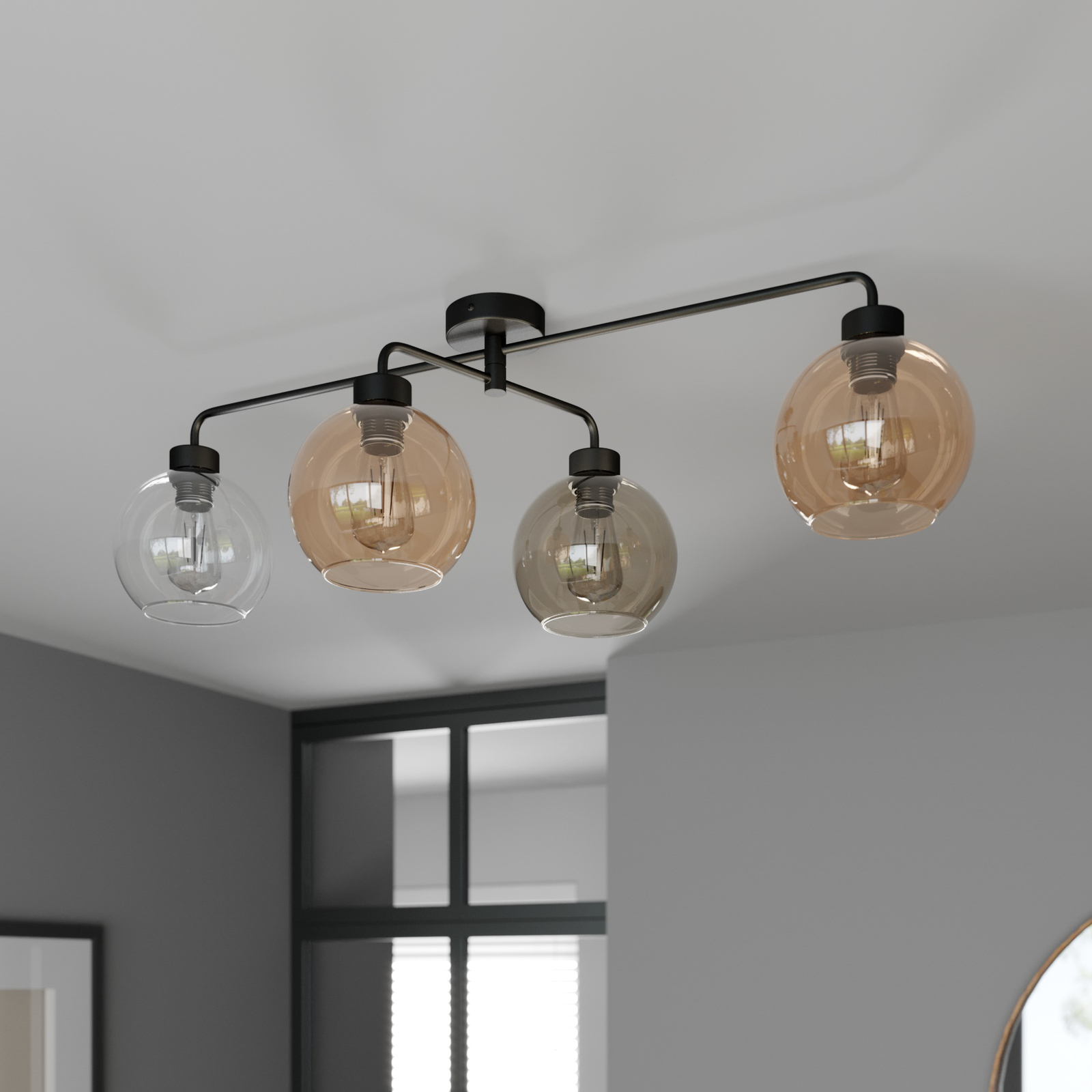 Euluna Kattovalaisin Cubus 4-lamp Kirkas/meripihka/harmaa