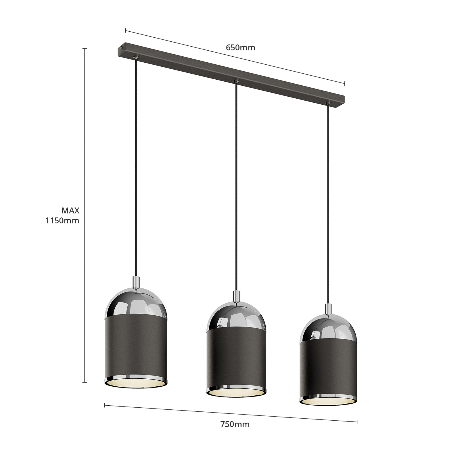 Euluna Riippuvalaisin Anadia, 3-lamp. Pitkä Antrasiitti