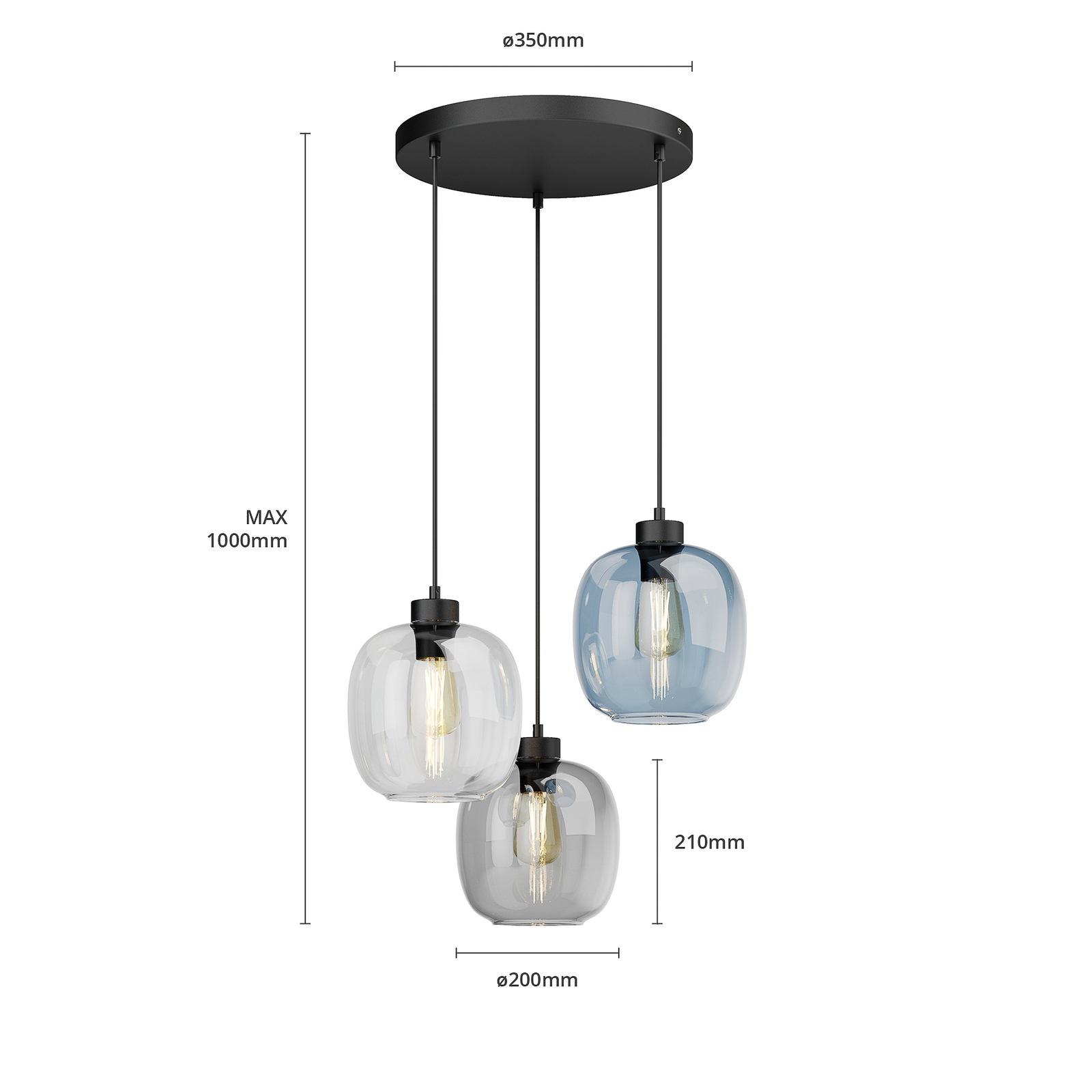 Euluna Riippuvalaisin Elio, 3-lamp, Sininen/kirkas/harmaa