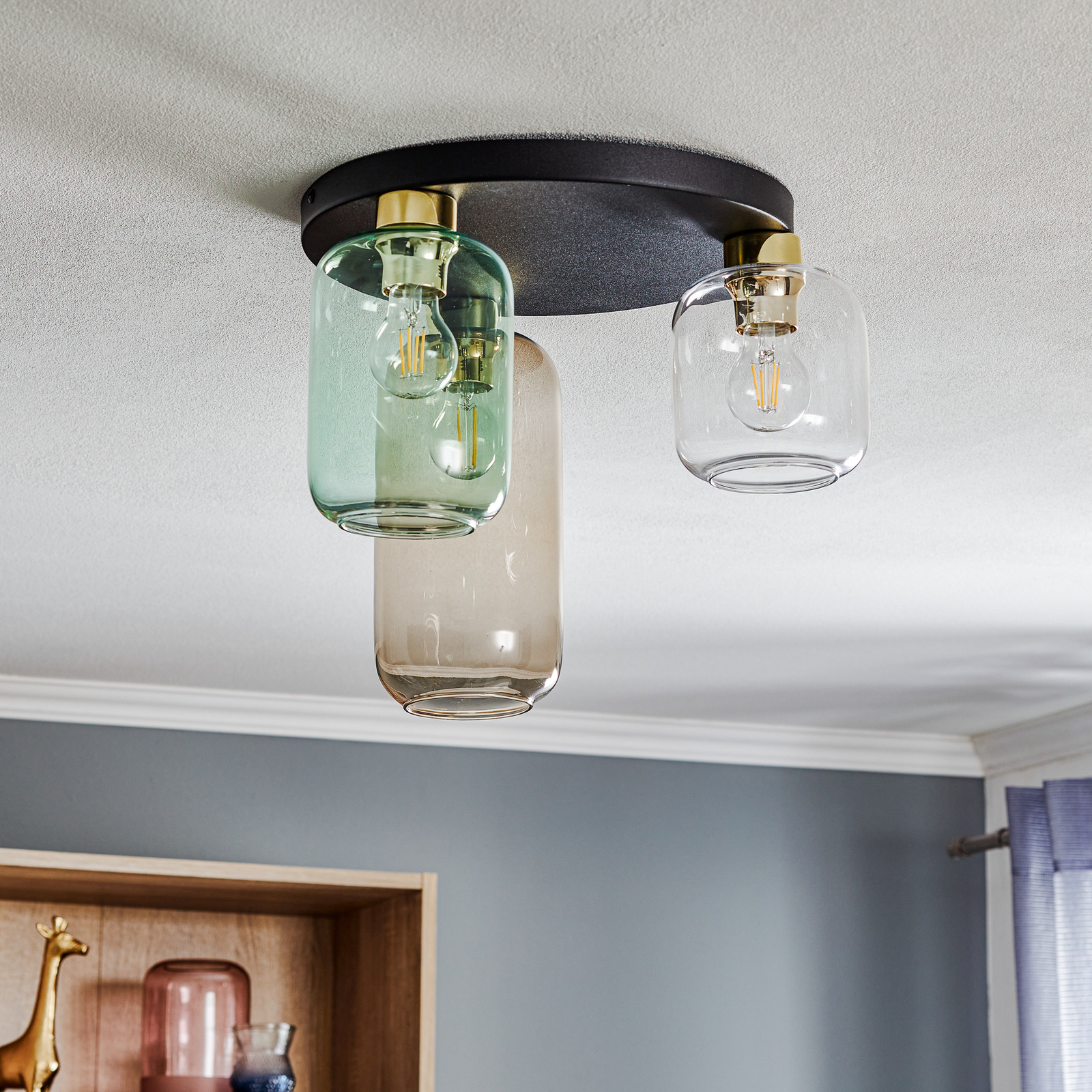 Euluna Riippuvalo Marco Green 3-lamp. Kirkas/vihreä/sin.