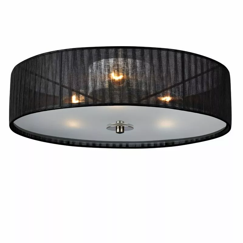 Byske-plafondissa on musta organzakangas ja himmeä lasilevy, joka heijastaa pehmeää valoa.
