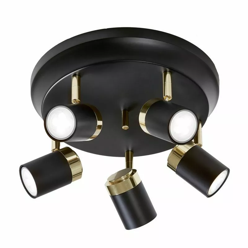 Kattokohdevalaisin Musta/Messinki Pyöreä 5×35 W