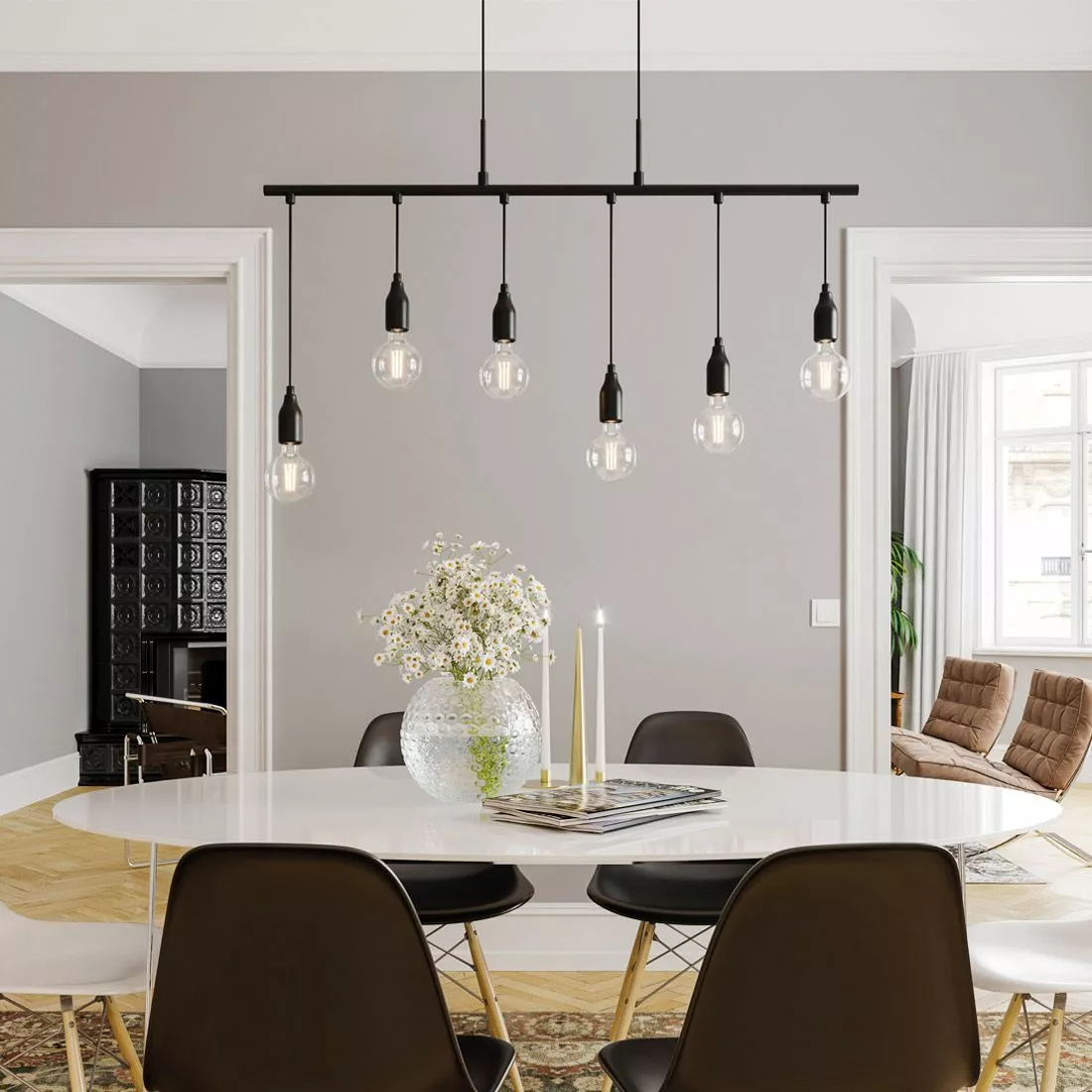 sopivan kattovalaisimen. Varusta lamppu kuudella valonlähteellä, niiden ei