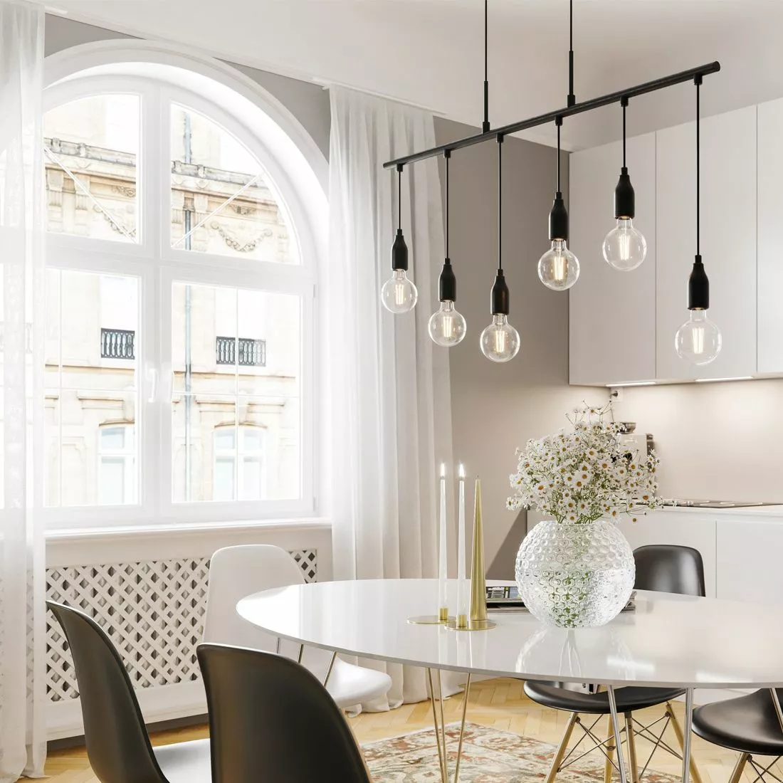 sovelluksella saat korkeussäädettävän valaisimen, jossa on kuusi lampun