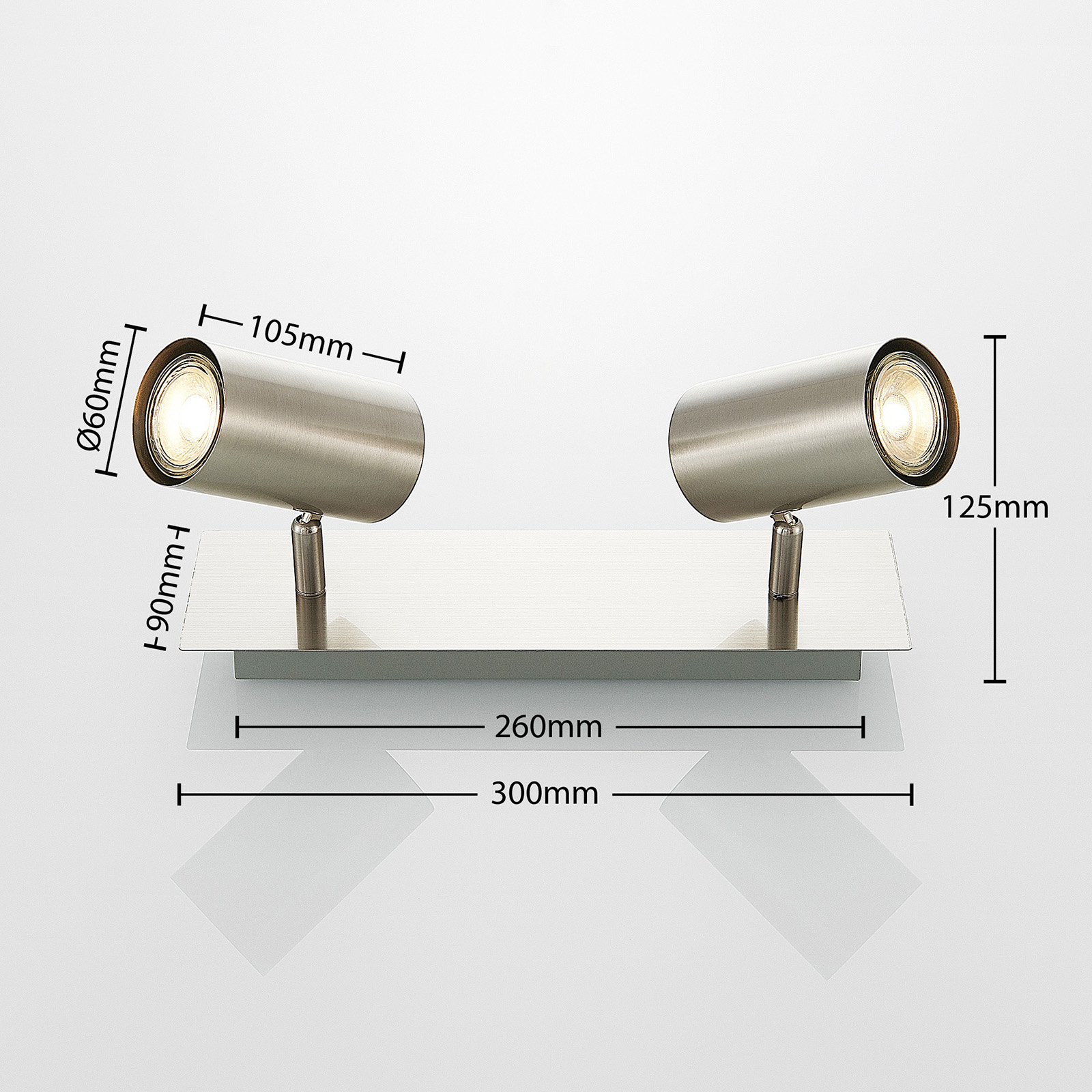 Lindby Joffrey -kattokohdevalo, 2-lamp., Nikkeli