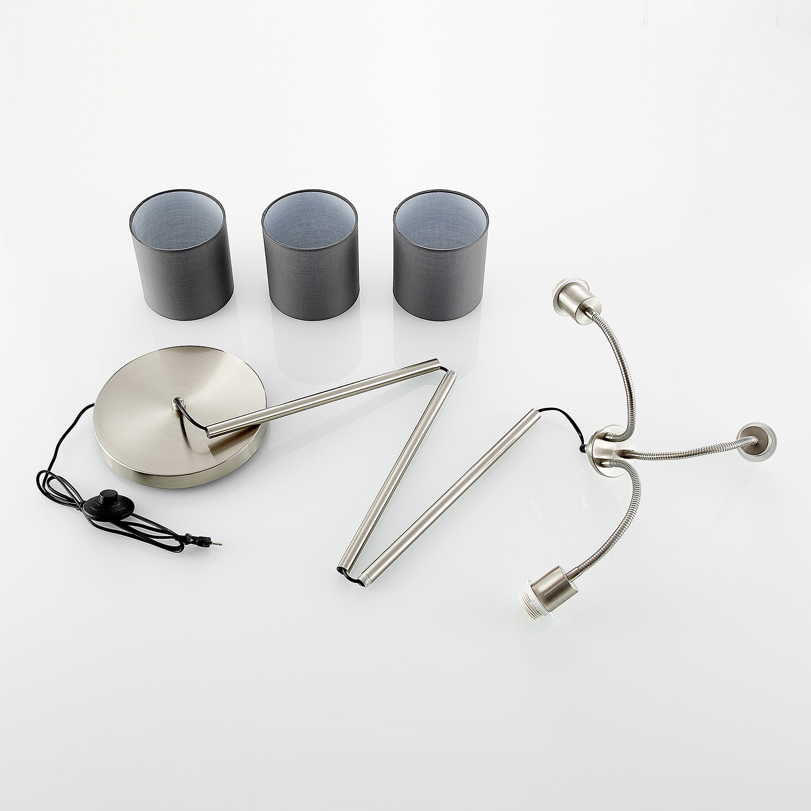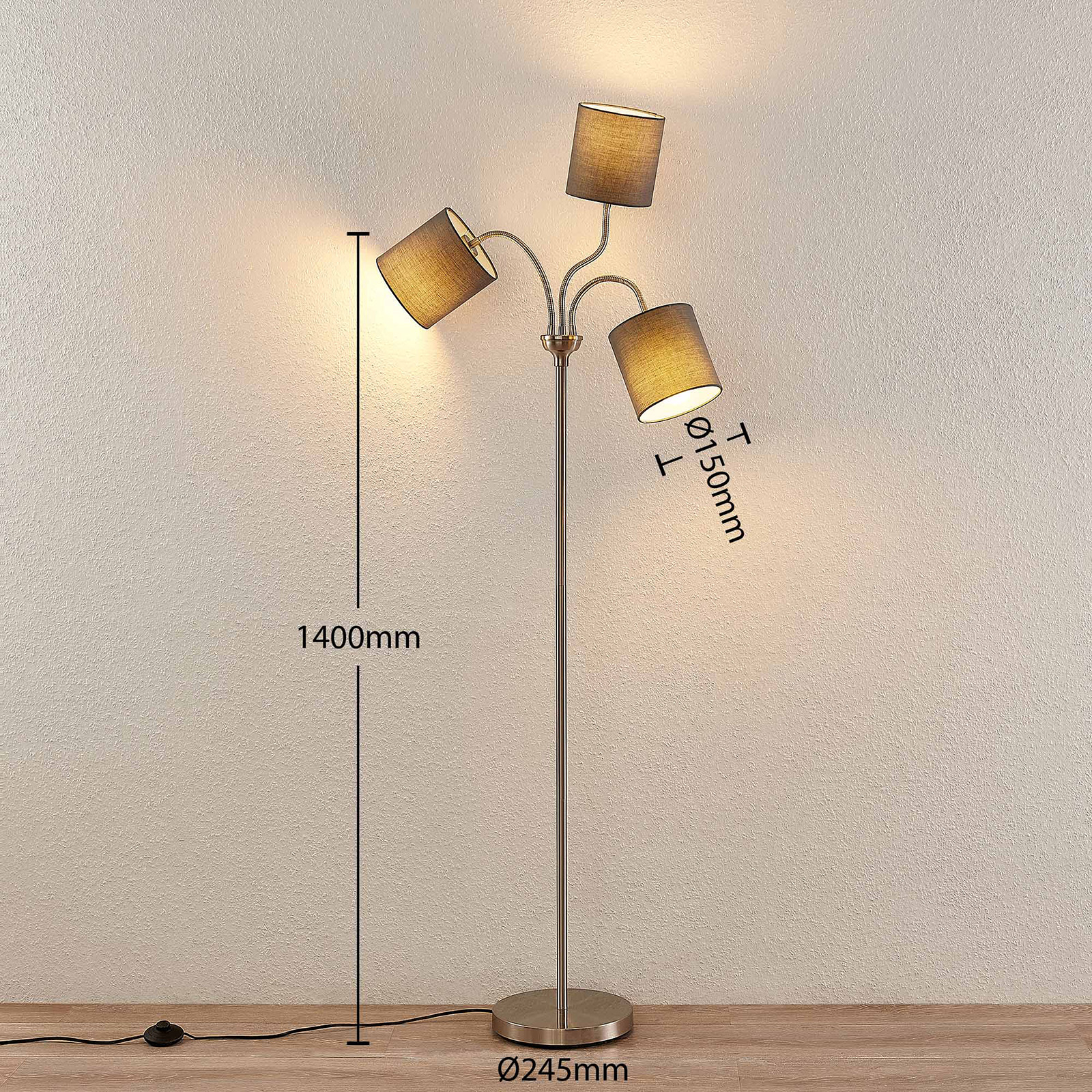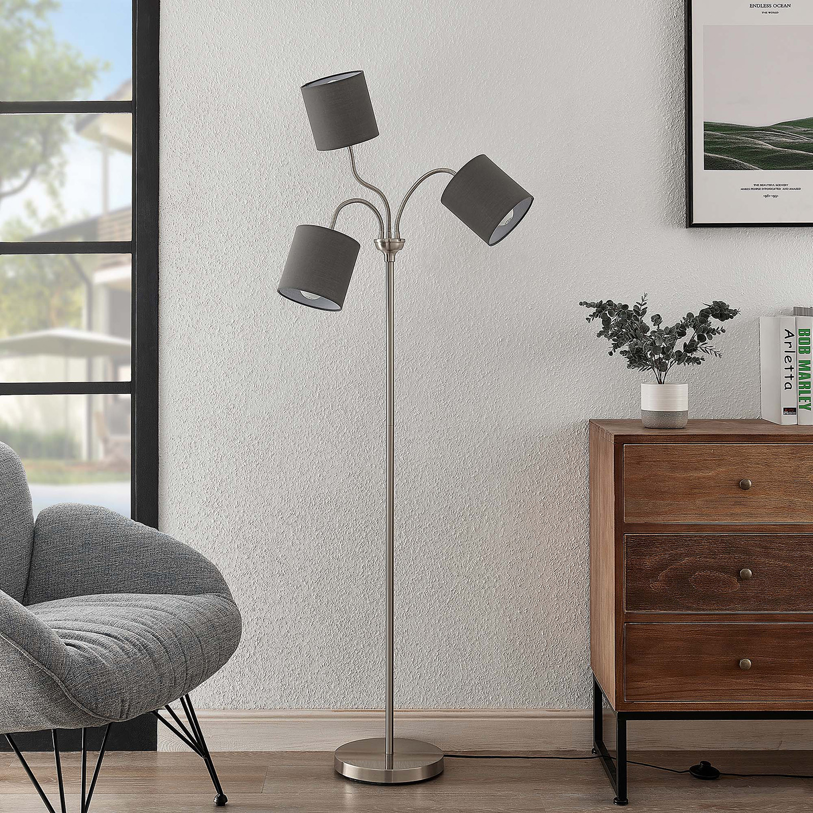 Lindby Manu -lattiavalo, 3-lamp., Harmaa
