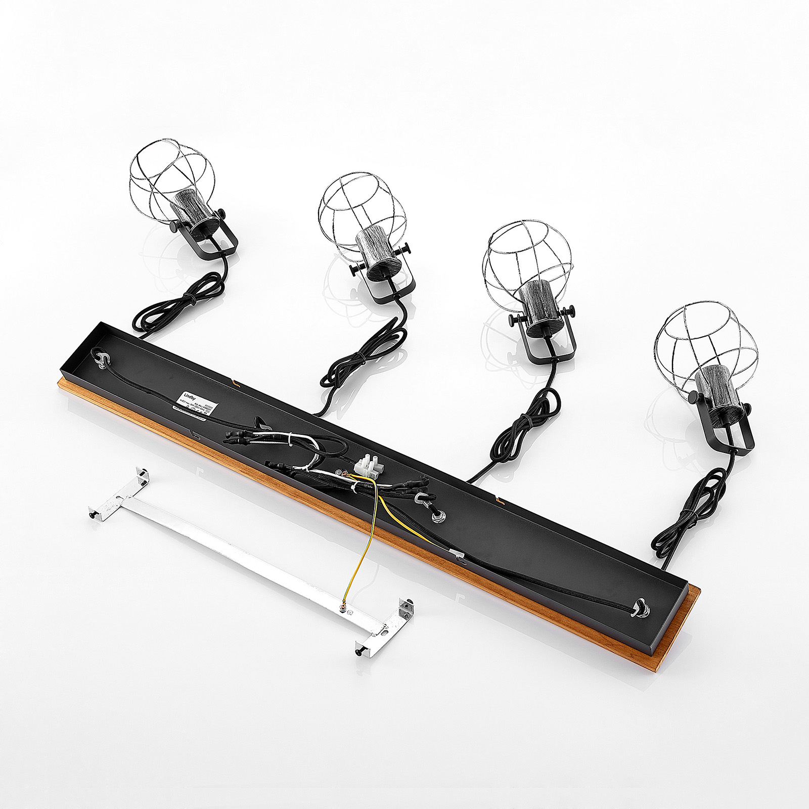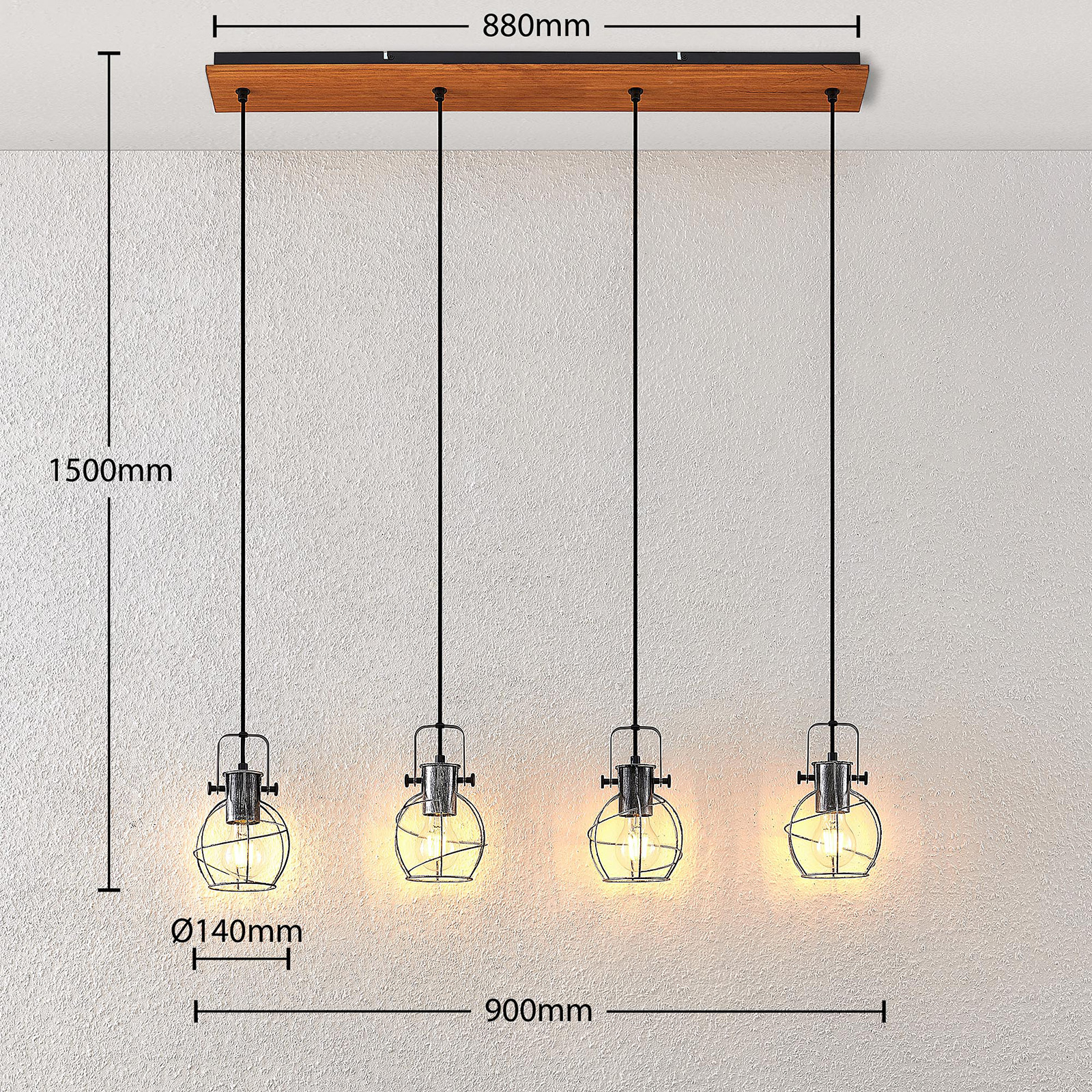 Kattopakki on valmistettu metallista, ja siinä on myös puinen koristelevy, jonka kaunis syykuvio lisää valaisimen luonnollista ulkoasua. Erittäin kaunis riippuvalaisin ruokailuhuoneeseen!