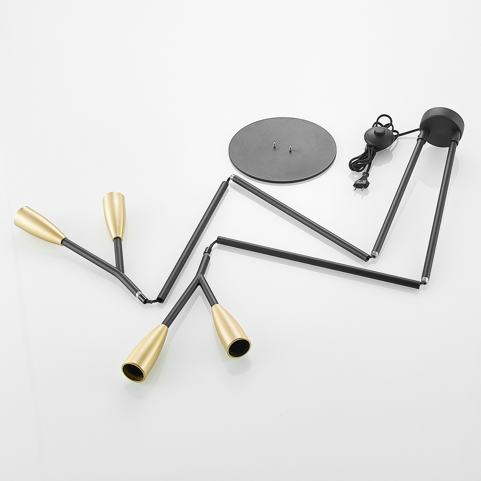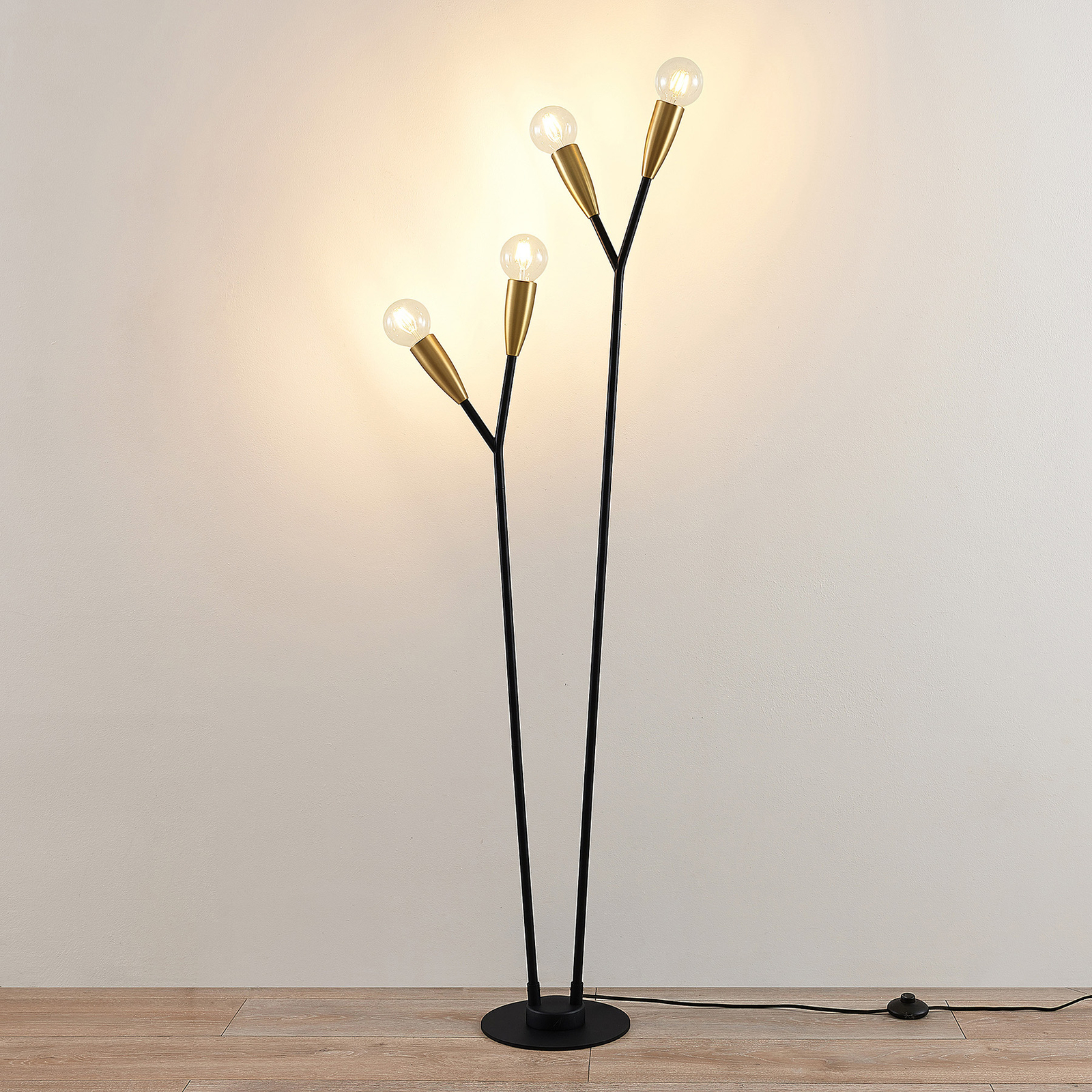 Lucande Carlea -lattiavalo, 4-lamp. Musta-messinki