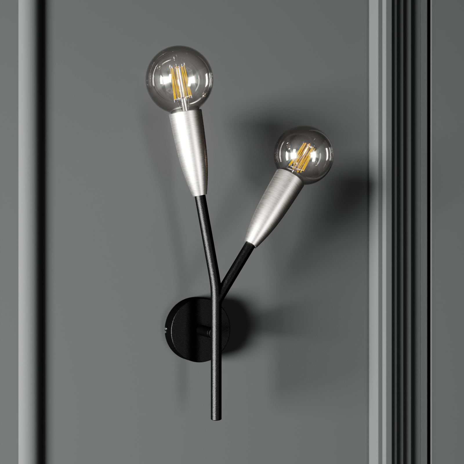 Carlea on kaunis valaisin eteiseen ja olohuoneeseen. Mustaa runkoa täydentävät lampunpitimien alla olevat nikkelinväriset elementit. Design-tyylinen muotoilu sopii hienosti moderniin sisustukseen. Valaisimen E27-pitimiin on suositeltavaa valita tyylin mukaiset lamput, kuten perinteisiä hehkulamppuja muistuttavat filamenttilamput, joissa on kirkas lasi.
