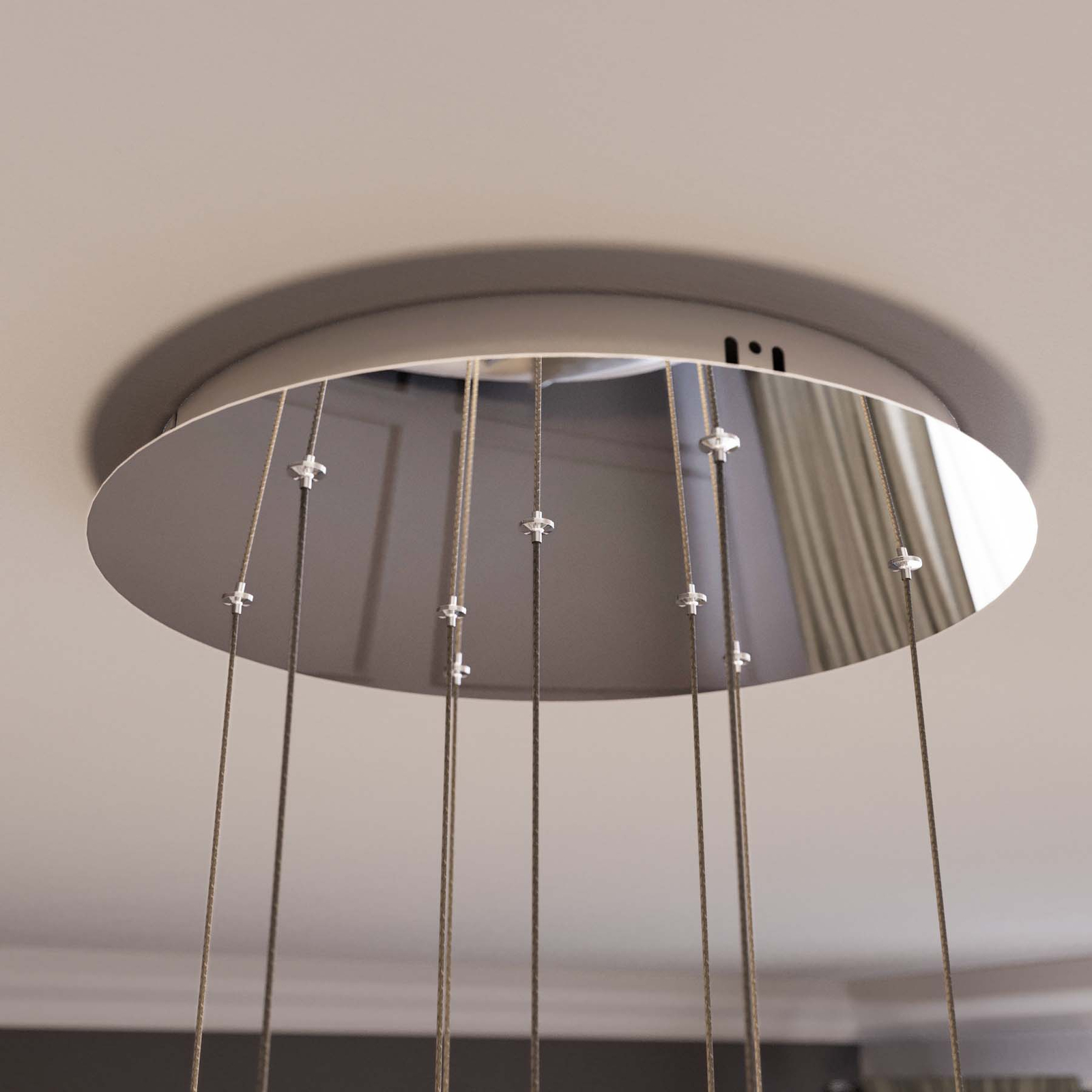 Kaunis Hayley-LED-riippuvalaisin on ylellisen tyylikäs. Yhdeksänlamppuinen valaisin valaisee suurenkin huoneen ja ihastuttaa upealla muotoilullaan. Valo jakautuu huoneeseen tasaisesti, epäsuorasti ja häikäisemättömästi.