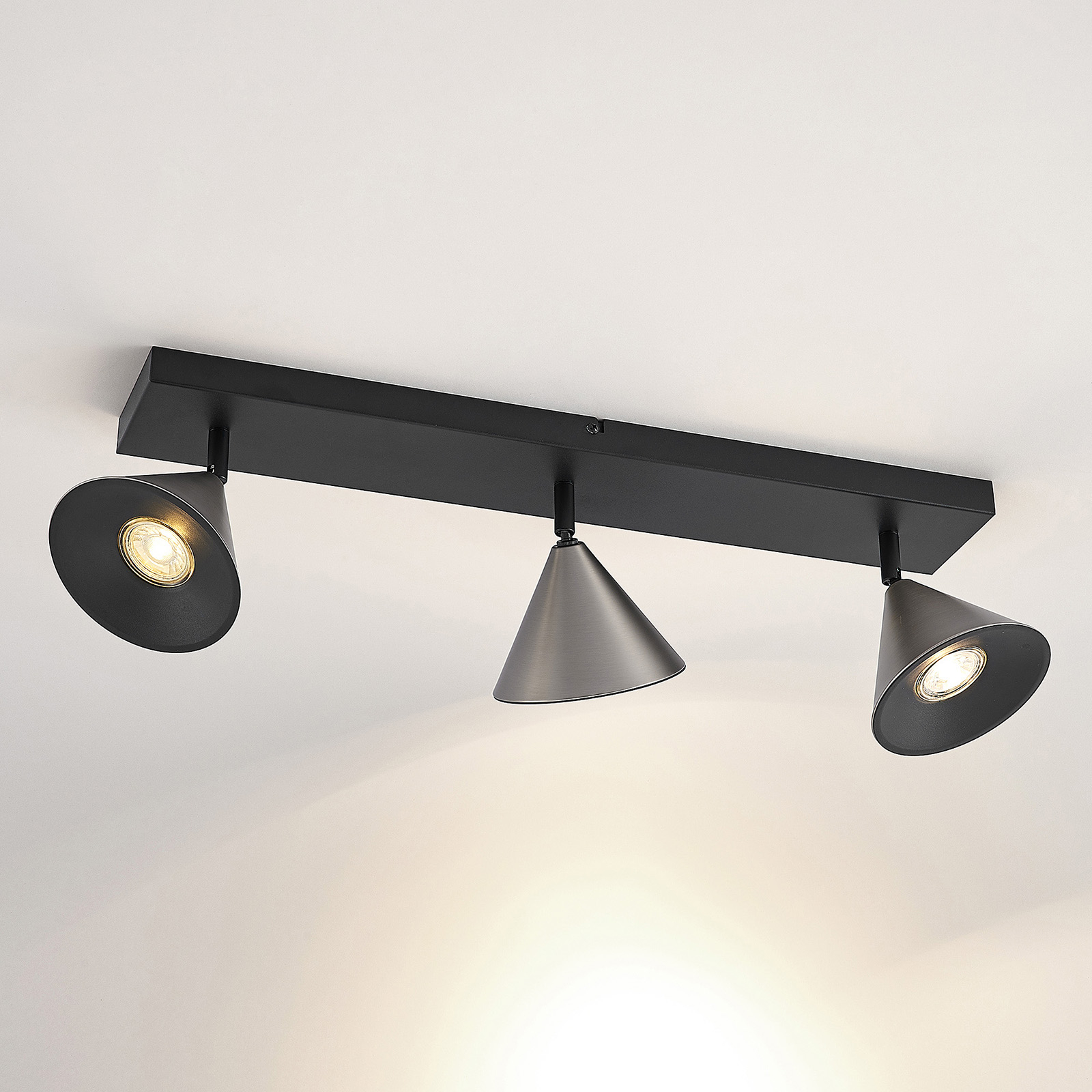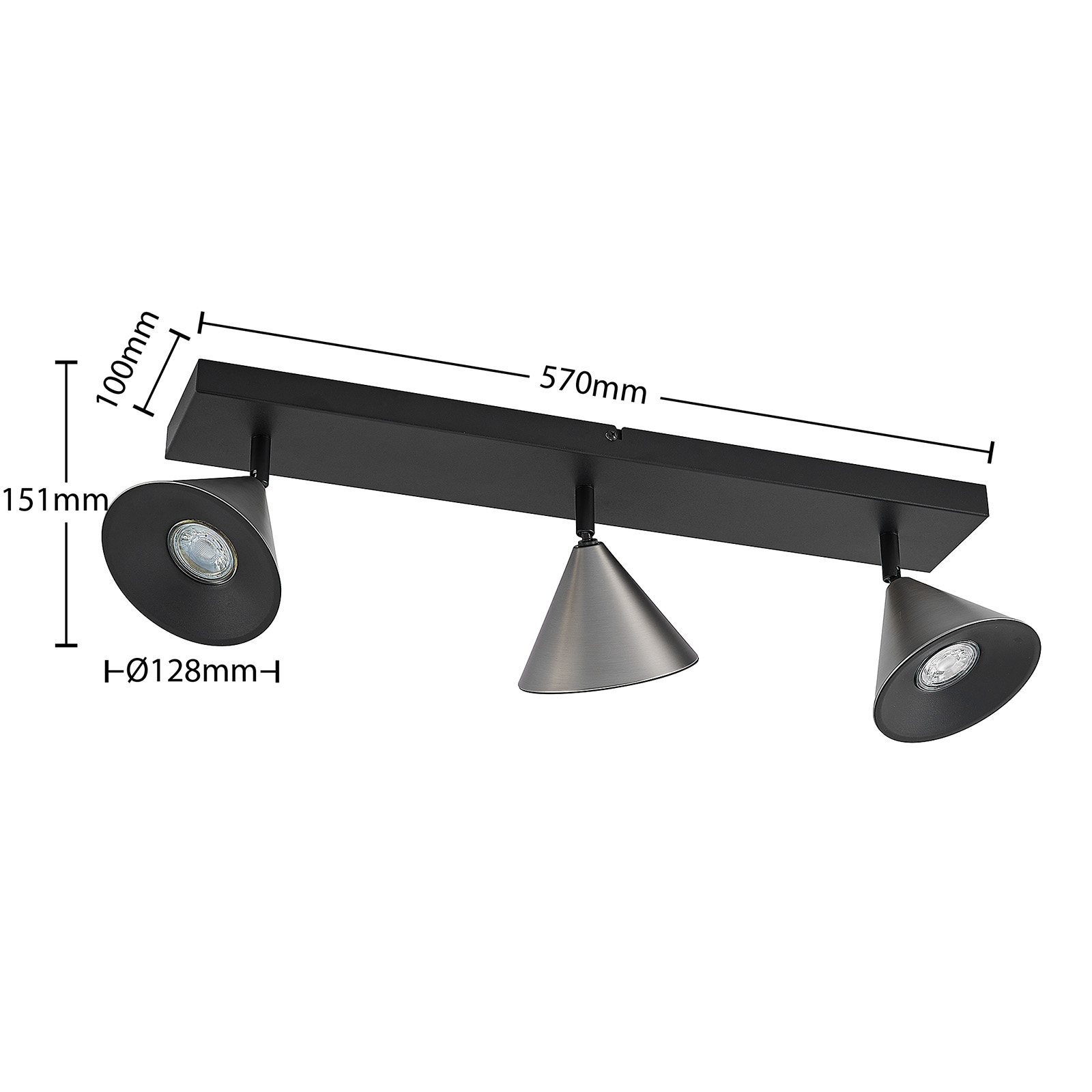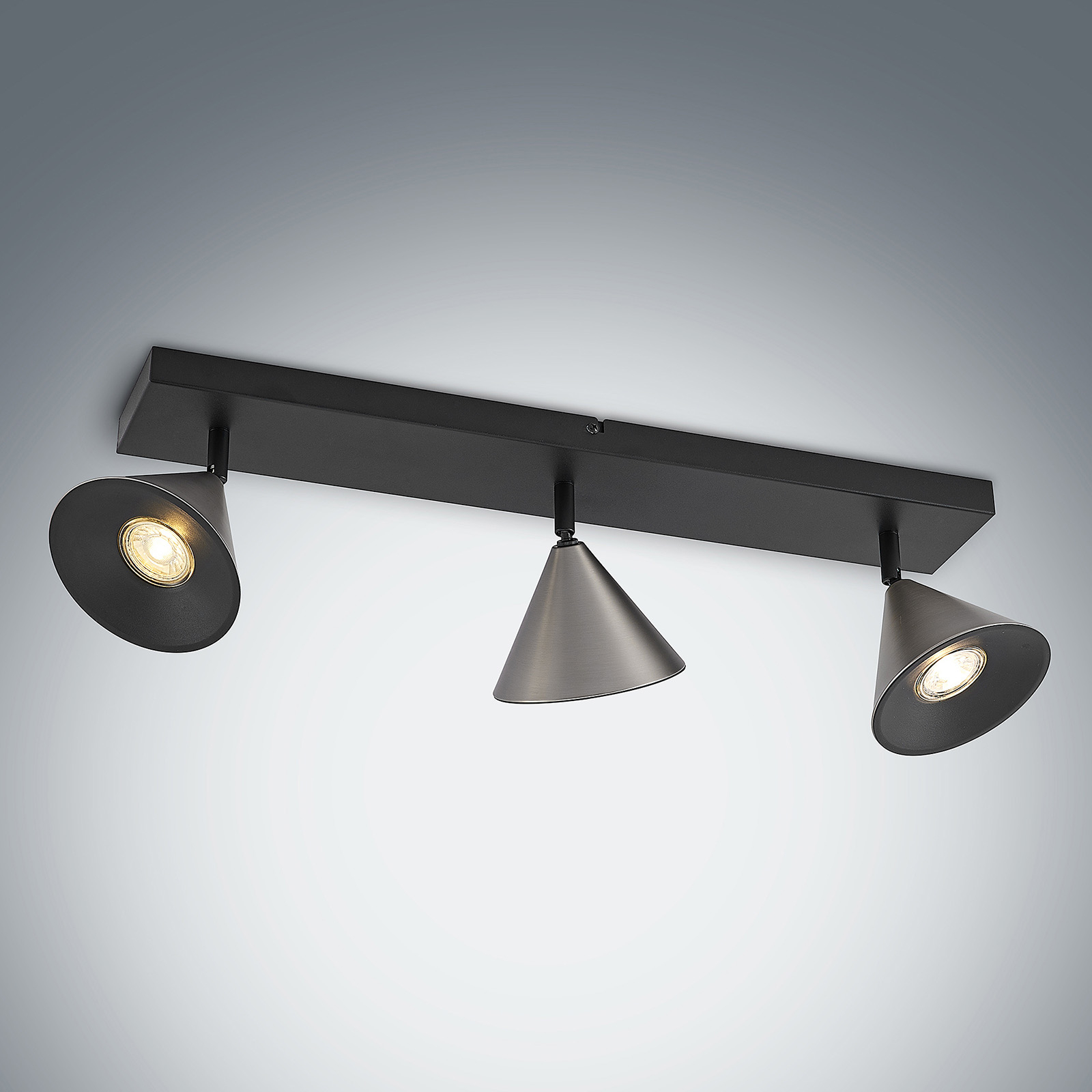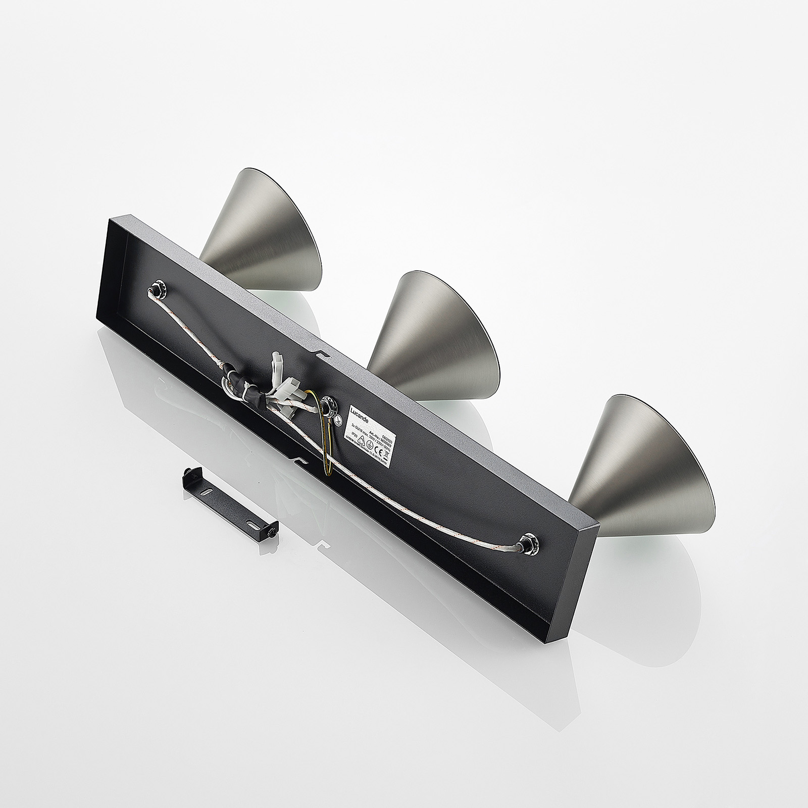 Kartio- kattovalaisin tekee vaikutuksen pienentyneellä ulkonäöllä ja toimintakeskeisellä konseptilla. Kolme tyylikästä varjostinta on kiinnitetty mustaan suorakulmaiseen asennuslevyyn. Nämä tarjoavat mukavan visuaalisen kontrastin runko, koska niille on ominaista pieni dynaaminen pyöristetyn kartion muoto. Matta nikkelillä viimeistelty sävy sopii upeasti moderneihin olohuoneisiin.