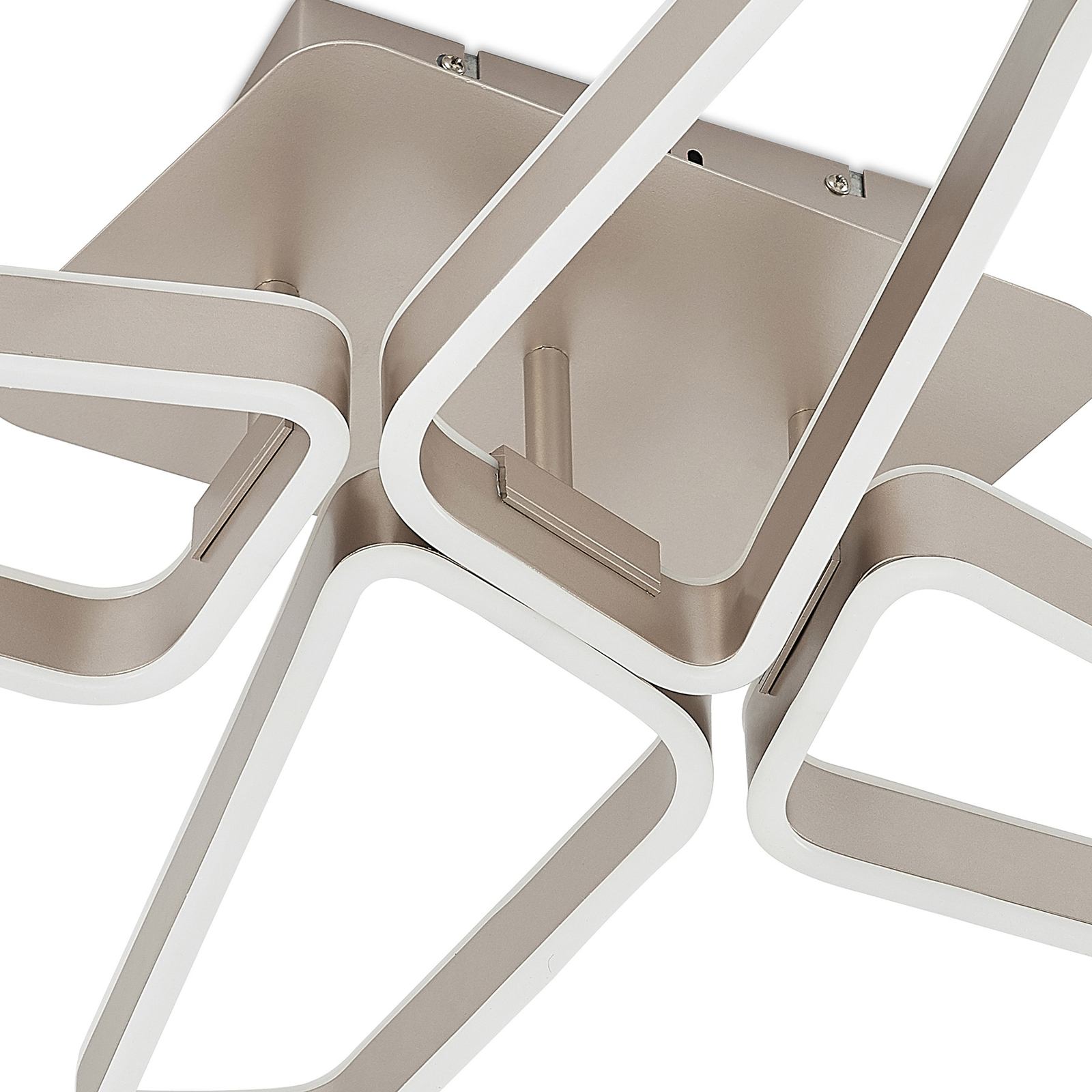 Moderni LED-kattovalaisin Quinn tekee vaikutuksen jännittävällä muotoilullaan. Nikkeliväriset metallikehykset on varustettu LED-valoilla ylä- ja alapuolella, joten lämmin valkoinen valo valaisee huoneen miellyttävästi ja korostaa samalla kattoon tulevaa lamppua.