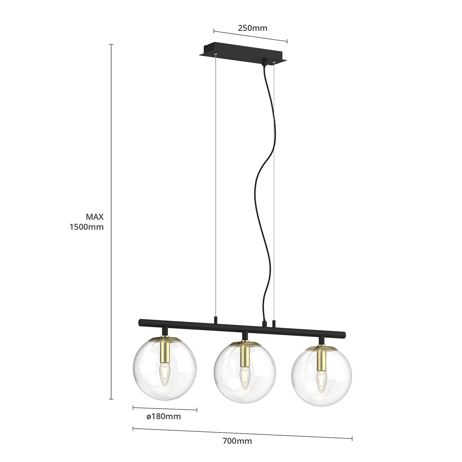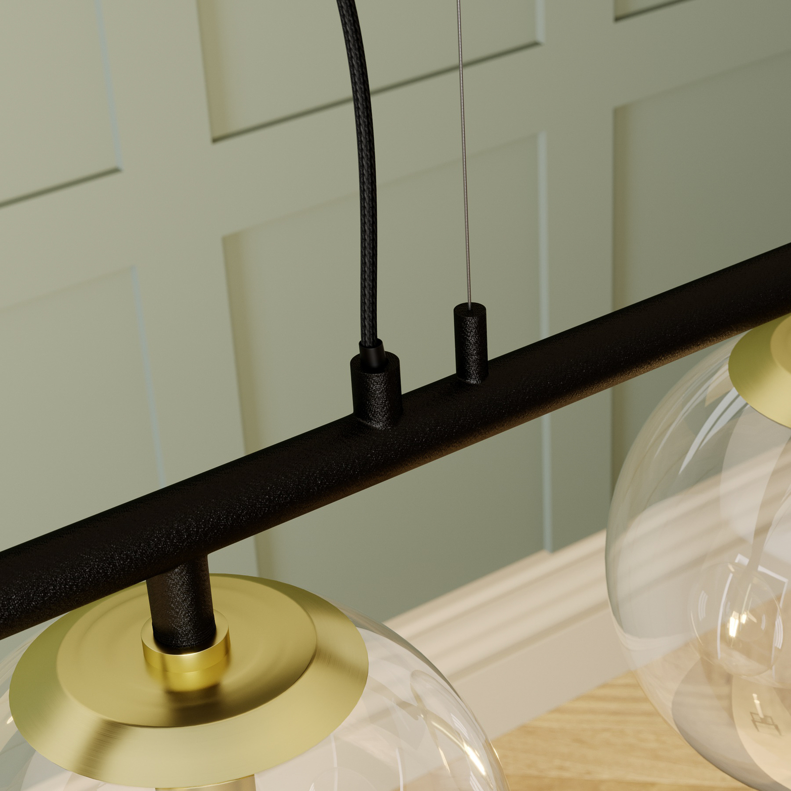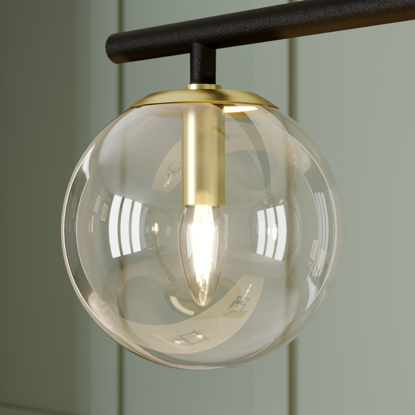 Sotiana-riippuvalaisin ihastuttaa tyylikkäällä kolmiosaisella muotoilullaan. Valaisin koostuu mustista metalliosista, kuten kattokiinnikkeestä, ja selvästi erottuvista messinginvärisistä lampunpitimistä. Pallon muotoiset varjostimet ovat kirkasta lasia ja sulautuvat vaivatta osaksi valaisimen tyylikästä muotoilua. Lasipallojen sisällä olevat lamput ovat esteettä näkyvillä, joten valaisimeen kannattaa valita sen tyyliin sopivat lamput. Tähän valaisimeen sopivat erinomaisesti pisaranmuotoiset E14-LED-filamenttilamput. Tyylikäs muotoilu on kuin uusi tulkinta klassisesta valaisinsarjasta ja tuo sisustukseen ripauksen luksusta. Yksilöllinen riippuvalaisin sopii hienosti moniin erilaisiin sisustustyyleihin.