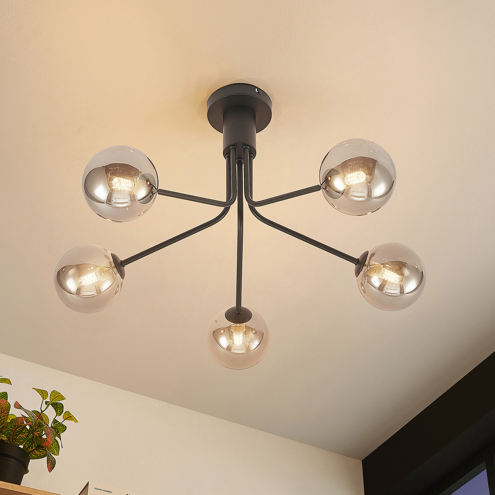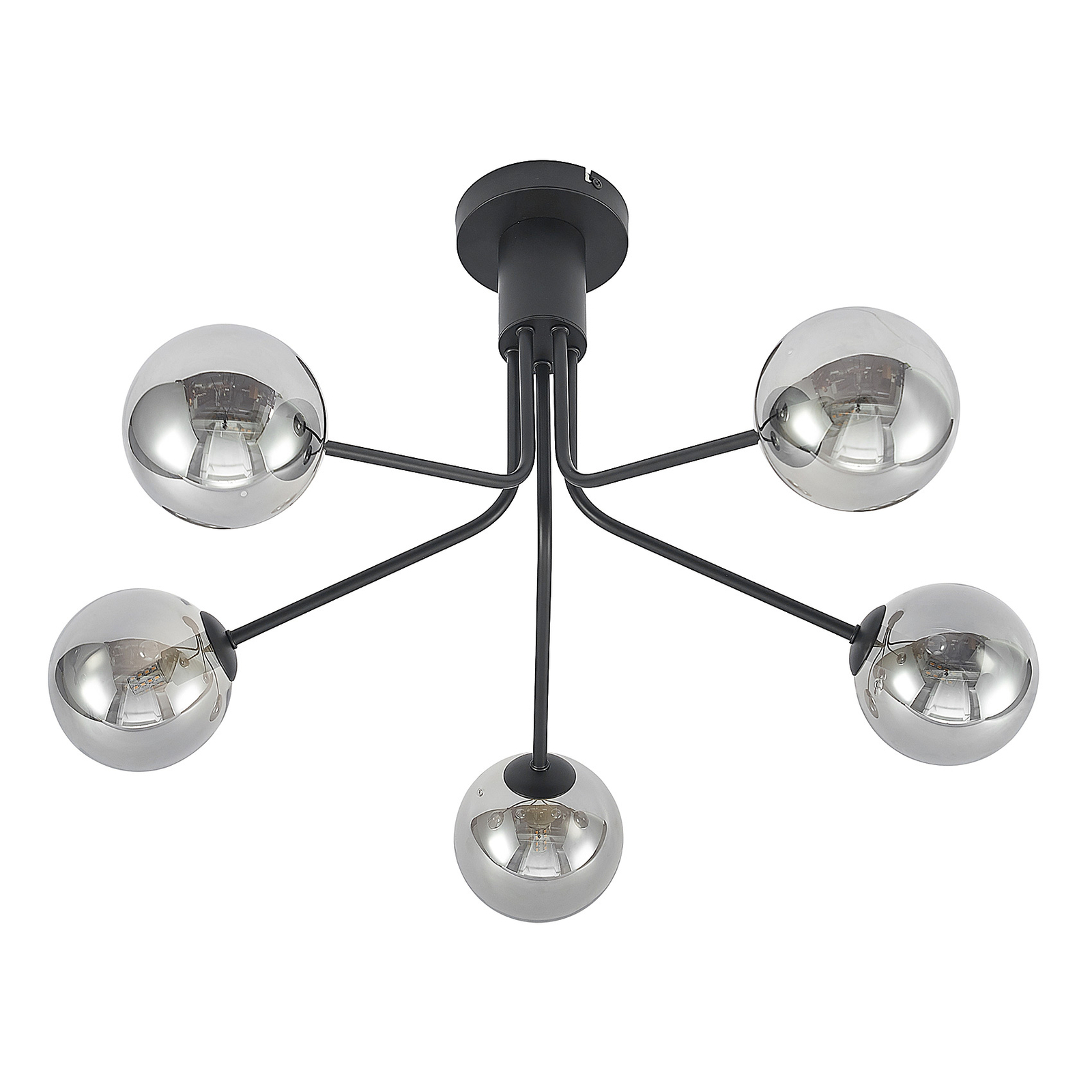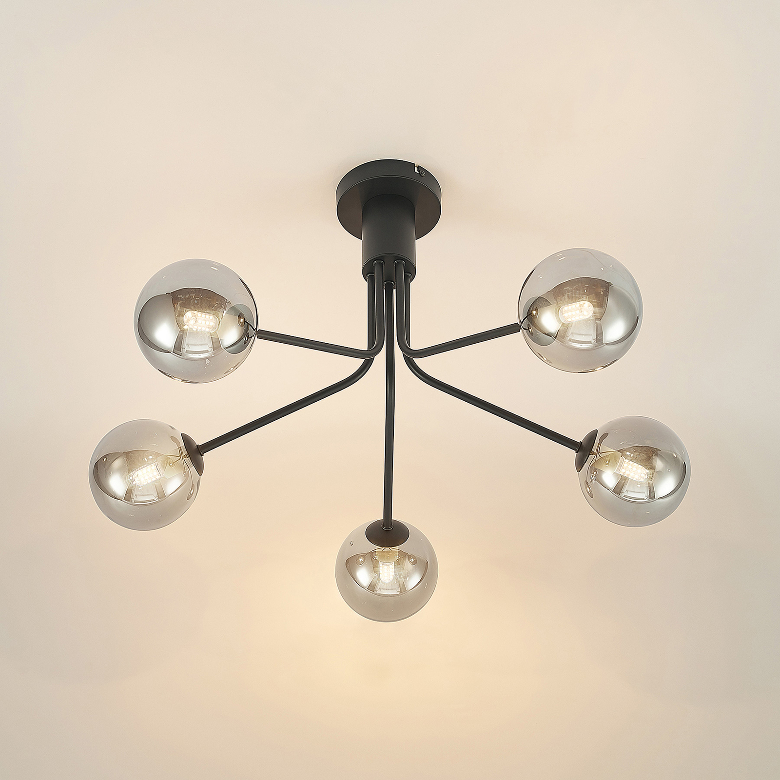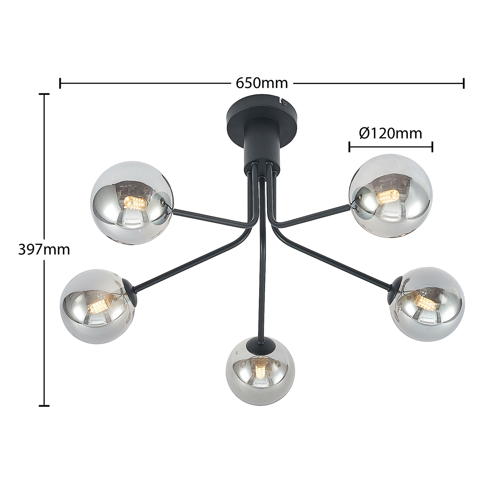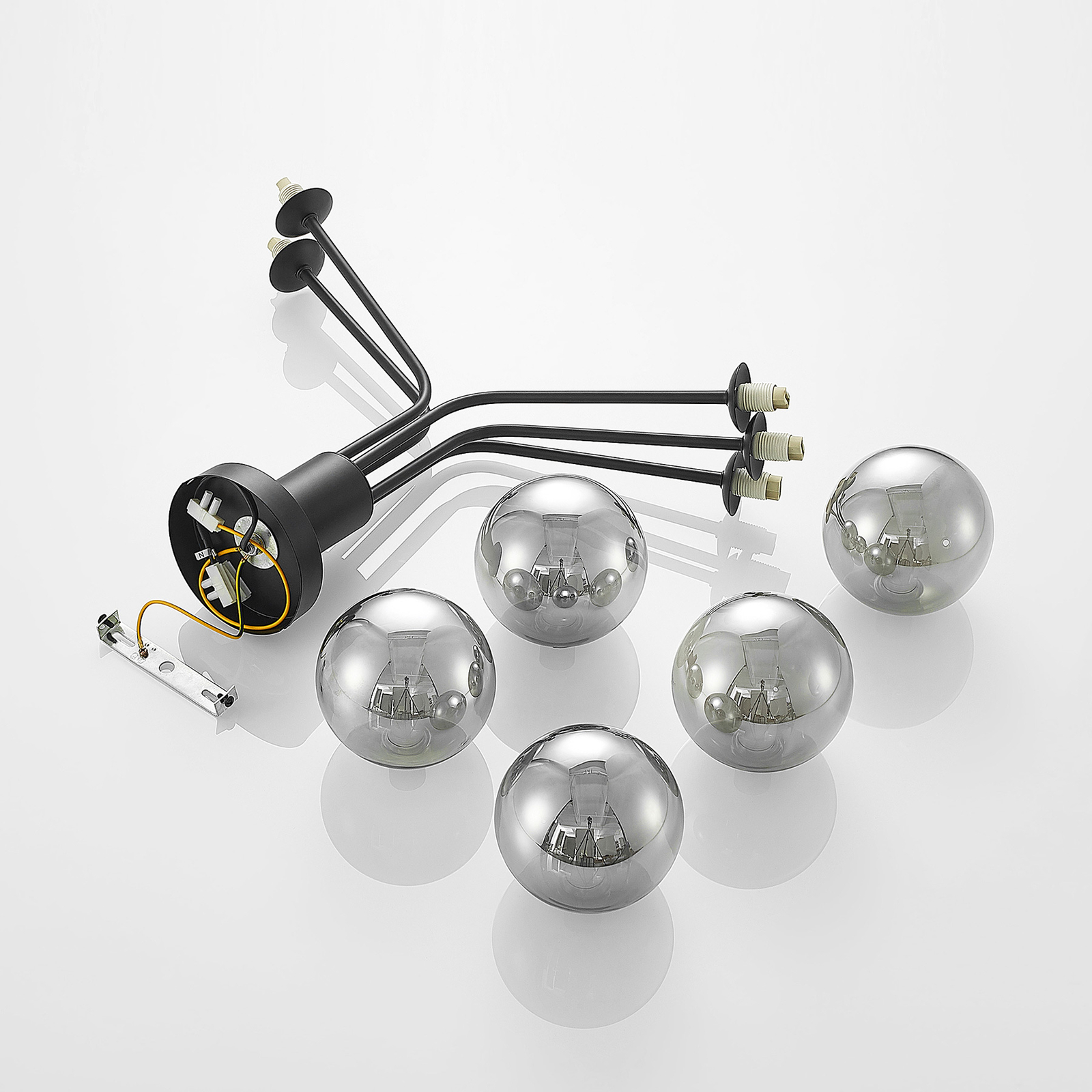 Sen ulkoasua, Wynona on ehdottomasti muistuttaa kertaa kaukana takanapäin 20-luvulla ja on sen vuoksi valaisin, joka on myös vuosikerta ominaisuuksia. Teräsrunko on maalattu mattamustaksi ja sitä täydentää viisi tasaisesti järjestettyä lasipalloa, jotka menevät keskeltä pois vinosti tangoissa ja näyttävät yhdessä joskus pyörältä. Sen pinta on sävytetty savunväriseksi ja varustettu urilla, joten siitä hyötyvät sekä optiikka että kevyt kuva, mutta itse lasi on kirkas ja antaa suoran kuvan sisätiloista. On G9-lamput, jotka voidaan valita haluamallasi tavalla.