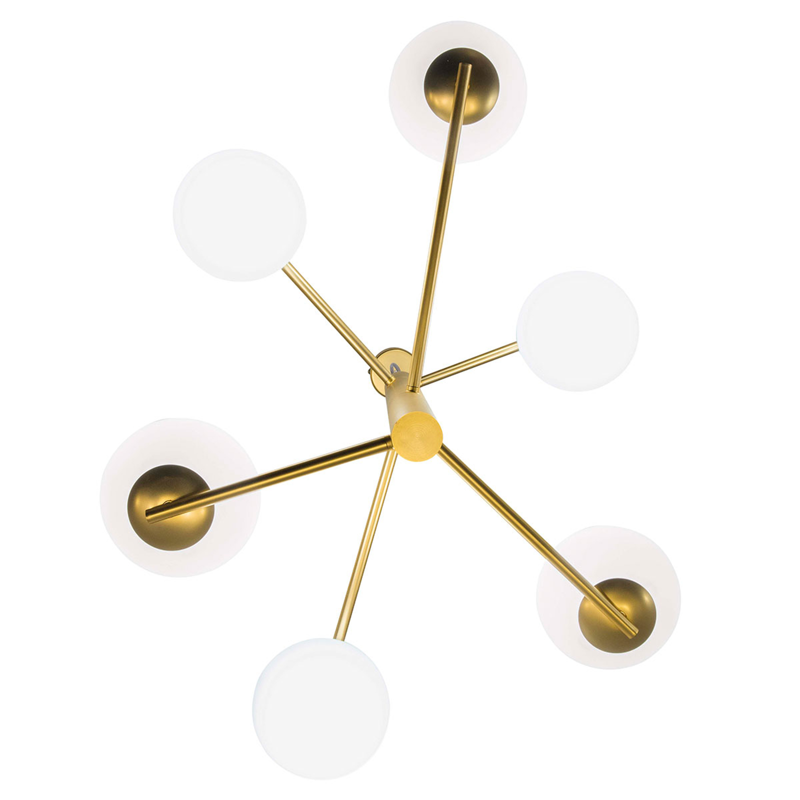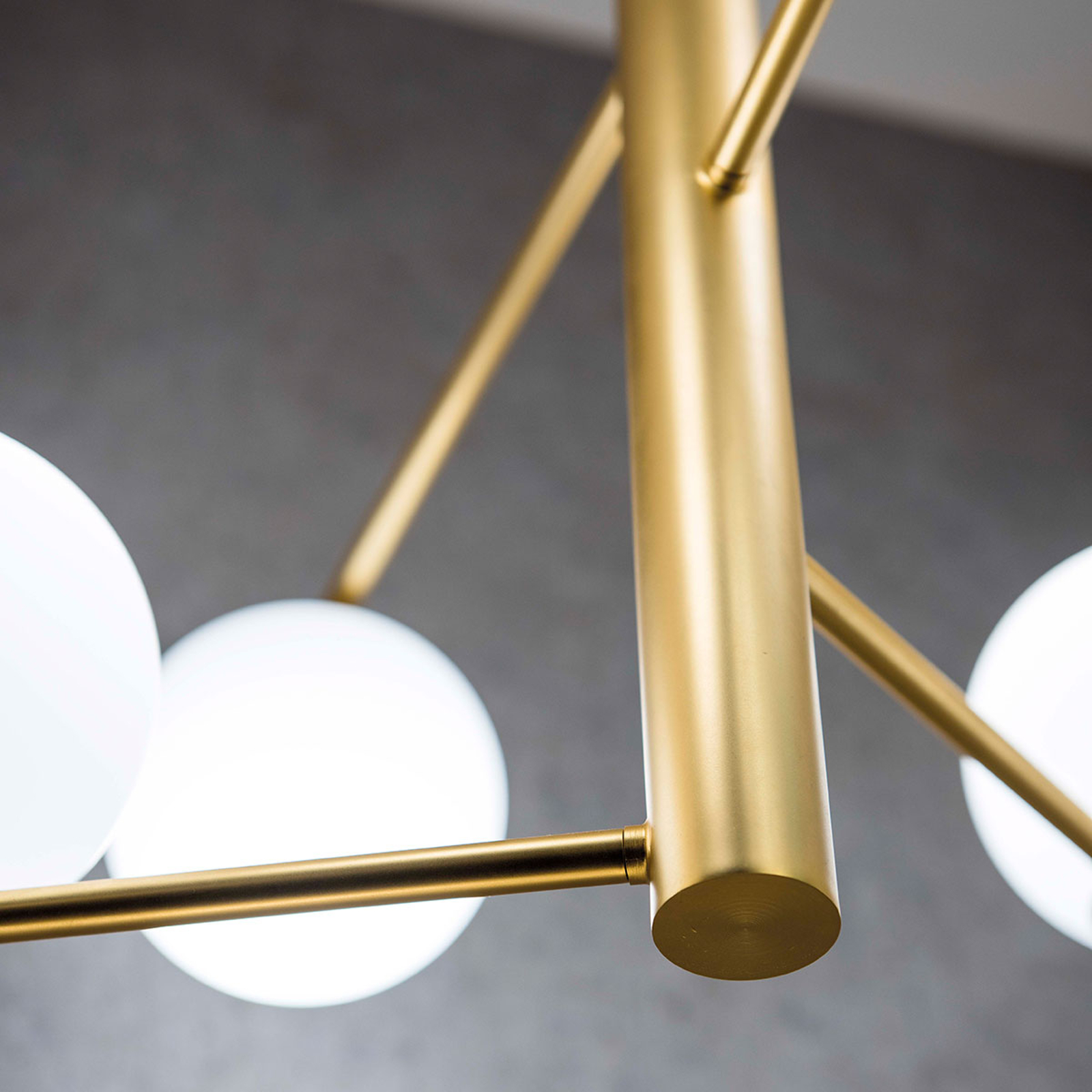 Valkoiset himmeät lasisävyt on kiinnitetty metallivarsiin. Kolmen alemman ruudun ryhmä on suunnattu ylöspäin; peilattuina kolme ylempää näyttöä on suunnattu alaspäin. Varren järjestely, joka pidentyy kohti keskiosaa, vie myös peilin symmetrian.