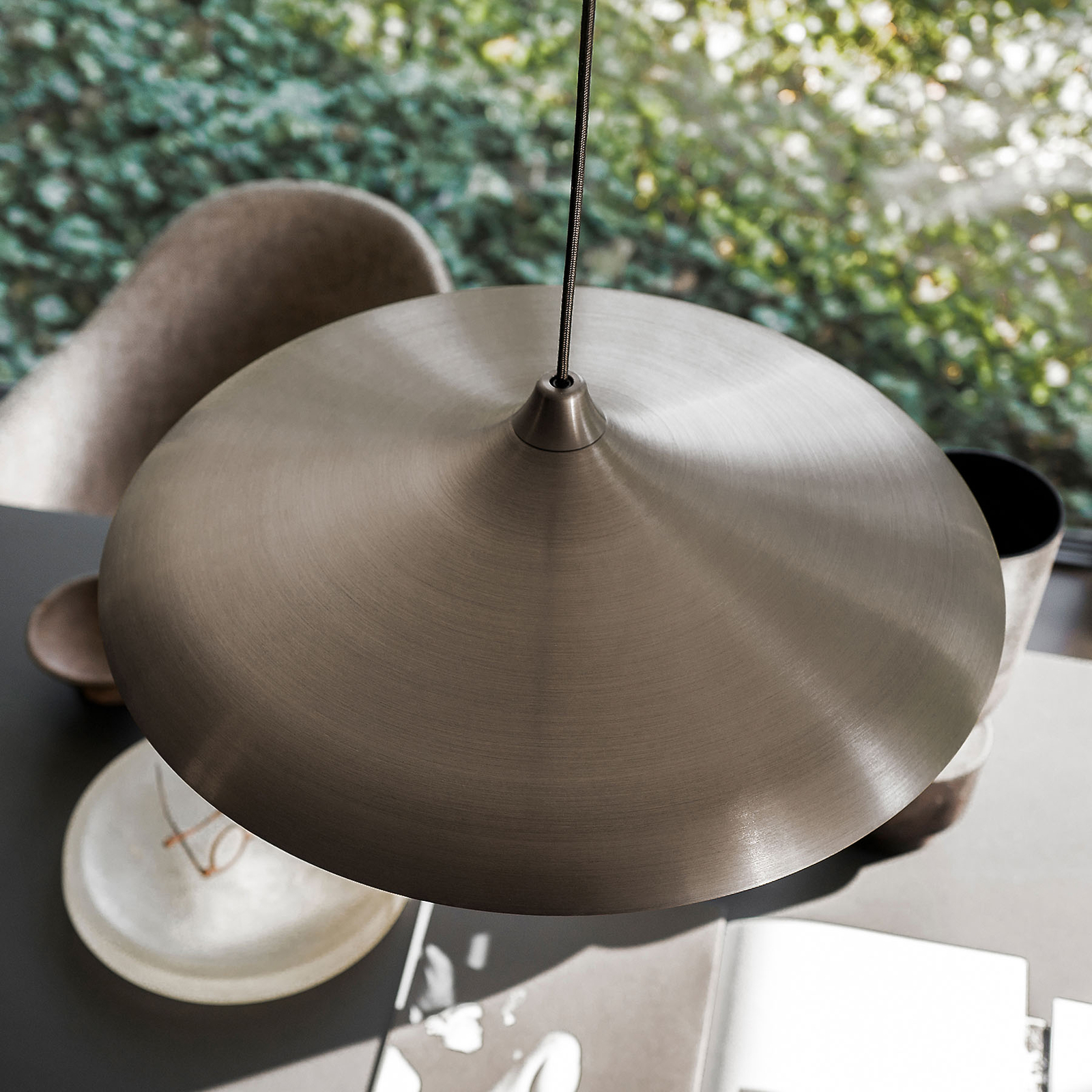 Pyöreän Lamp on suunnitellut Studio WM, design-studio, jonka perustivat vuonna 2010 Wendy Legro ja Maarten Collignon Rotterdamissa. Se koostuu erittäin tasaisesta alumiinista valmistetusta varjostin , jonka pinta on harjattua pronssia, ja siinä sijaitsevasta hajottimesta, joka suojaa LED-valoja ja antaa niiden loistaa homogeenisesti. Pyöreä Lamp on lamppu, joka tarjoaa aina oikean valaistuksen, joko yksityisessä ruokasalissa tai keittiössä tai kaupallisella alueella.