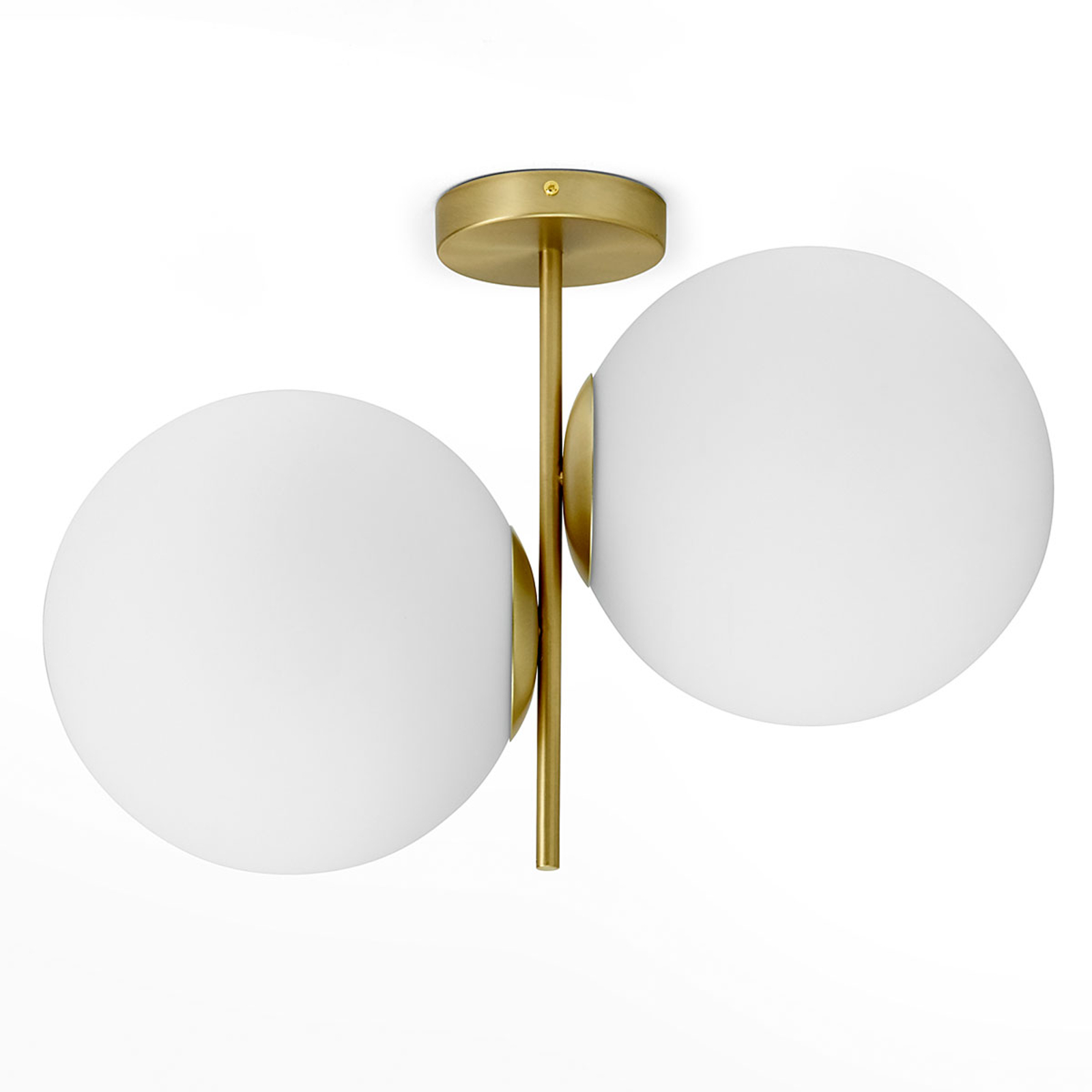 Kaksi vastakkaista lampunvarjostinta on kiinnitetty tankoon, joka ulottuu alaspäin messinkivärisestä kattokiinnike . Pallomainen varjostin on valmistettu mattamaisesta maitolasista ja piilottaa E27- pidin, joka voidaan varustaa kaikilla sopivilla valonlähteillä. Jugen-sarjan erikoissuunnittelua jatketaan myös tässä kattovalaisin versiossa, joka inspiroi katsojaa sen epätavallisella muodolla. Jugen-sarjan suunnittelu on peräisin italialaiselta Davide Negriltä, joka on kuuluisa arkkitehti ja sisustussuunnittelija.