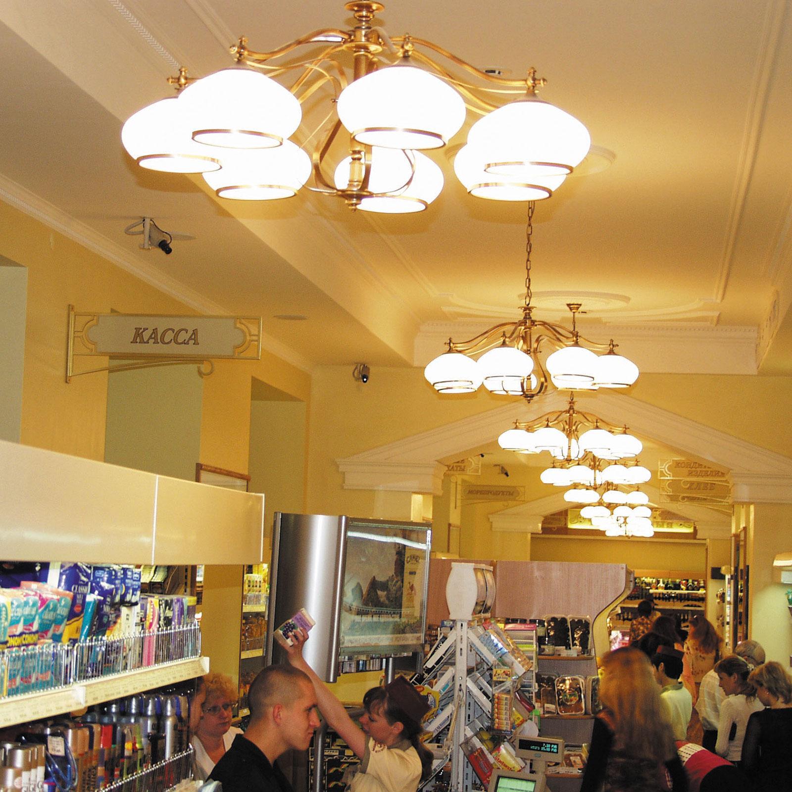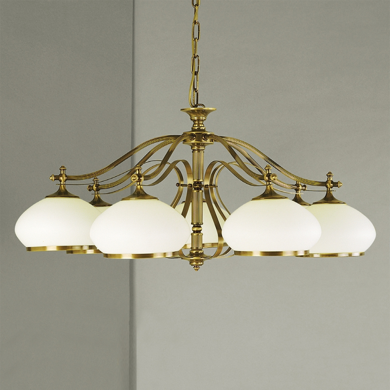 Riippuvalaisin EMPIRAssa on klassinen muotoilu. Valaisimessa on seitsemän opaalilasivarjostinta sekä täysmessinkinen valaisinrunko. Mattapintaiset lasivarjostimet saavat aikaan miellyttävän ja tasaisesti jakautuvan valon. Valaisimen antiikkimessinkipintainen runko antaa valaisimelle rustiikkisen ulkomuodon. Näin tätä mallia voidaan yhdistää useisiin eri sisustustyyleihin, niin klassiseen kuin myös moderniin.