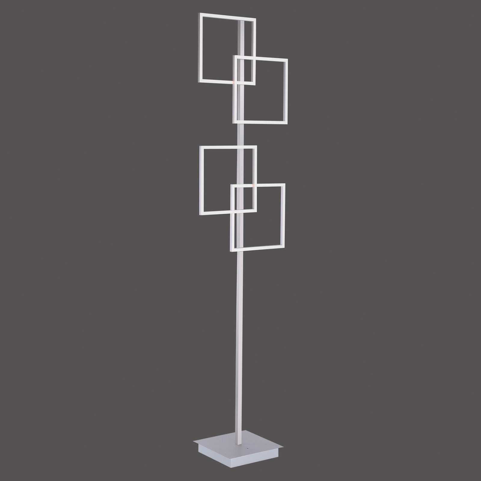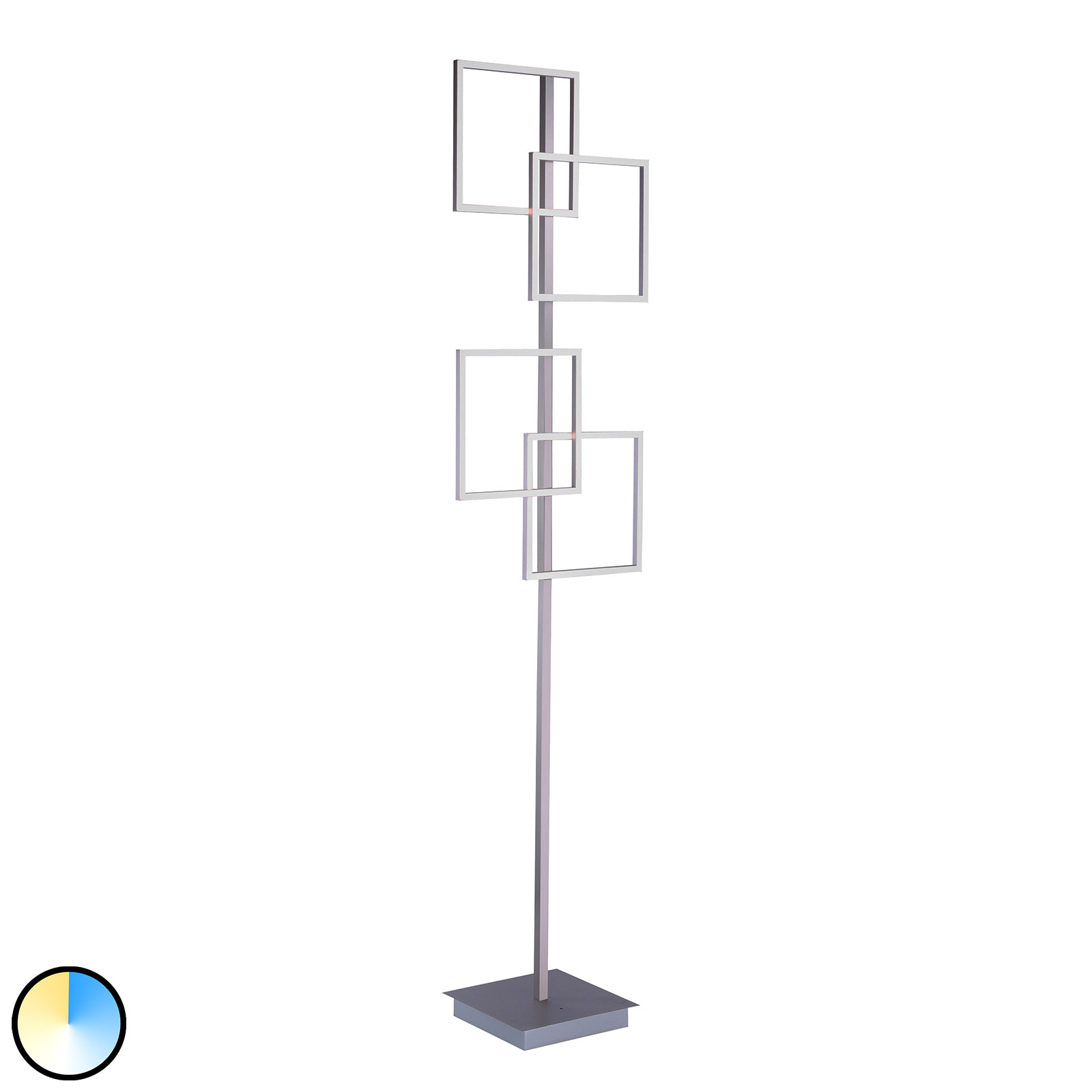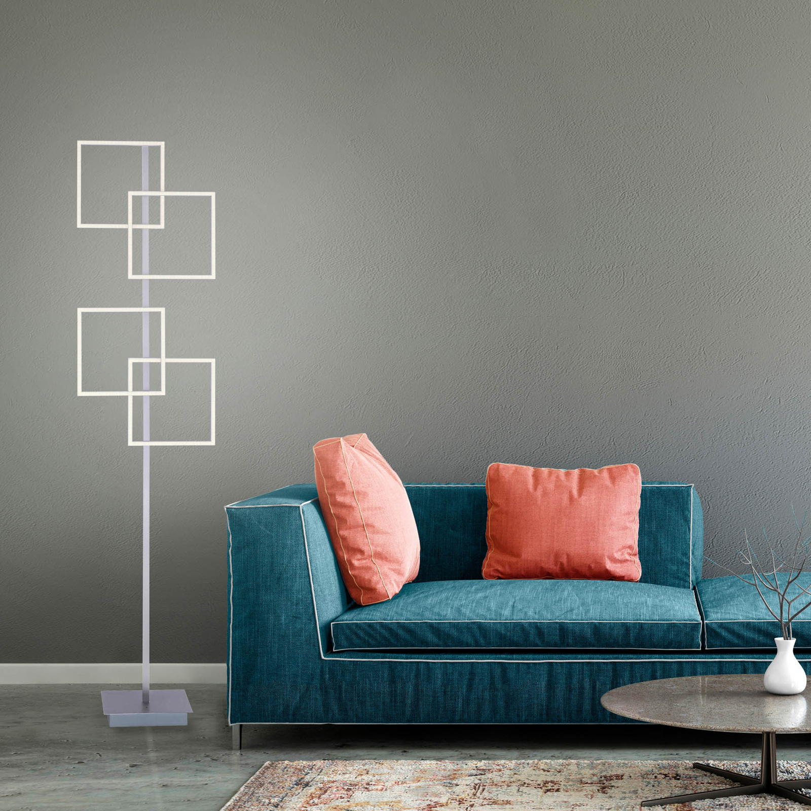 lattiavalaisin seisoo tukevasti neliön jalalla. Neljä neliömäistä metallikehystä on verhottu yhteen kulmavalaisinjalustalle. Jokaisessa metallikehyksessä on LED-levy. Valoa säädetään kaukosäätimellä omien toiveidesi mukaan. Innovatiivisen CCT-tekniikan ansiosta valon alue kattaa spektrin lämpimästä valkoisesta universaaliin valkoiseen. Eri asetukset voidaan tallentaa.