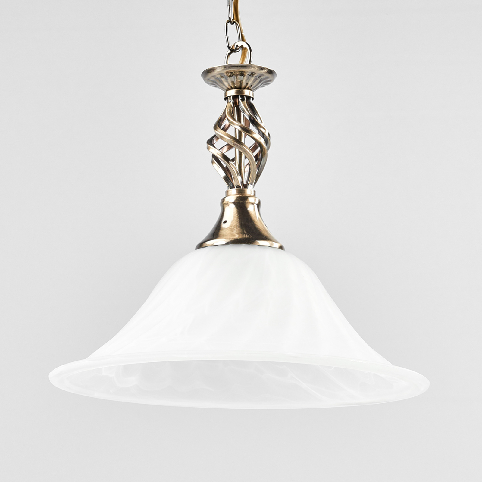 Yksilamppuinen CAMEROON-sarjan riippuvalaisin vakuuttaa klassisilla ja leikkisillä muodoillaan. Tyylikäs vanhamessinkinen ripustus on viimeistelty suurella valkoisella ja marmoroidulla lasivarjostimella. Riippuvalaisimen koruton ilme mahdollistaa sen integroimisen erilaisiin sisustustyyleihin ja valaisee erinomaisesti esimerkiksi ruokapöydän yläpuolella.