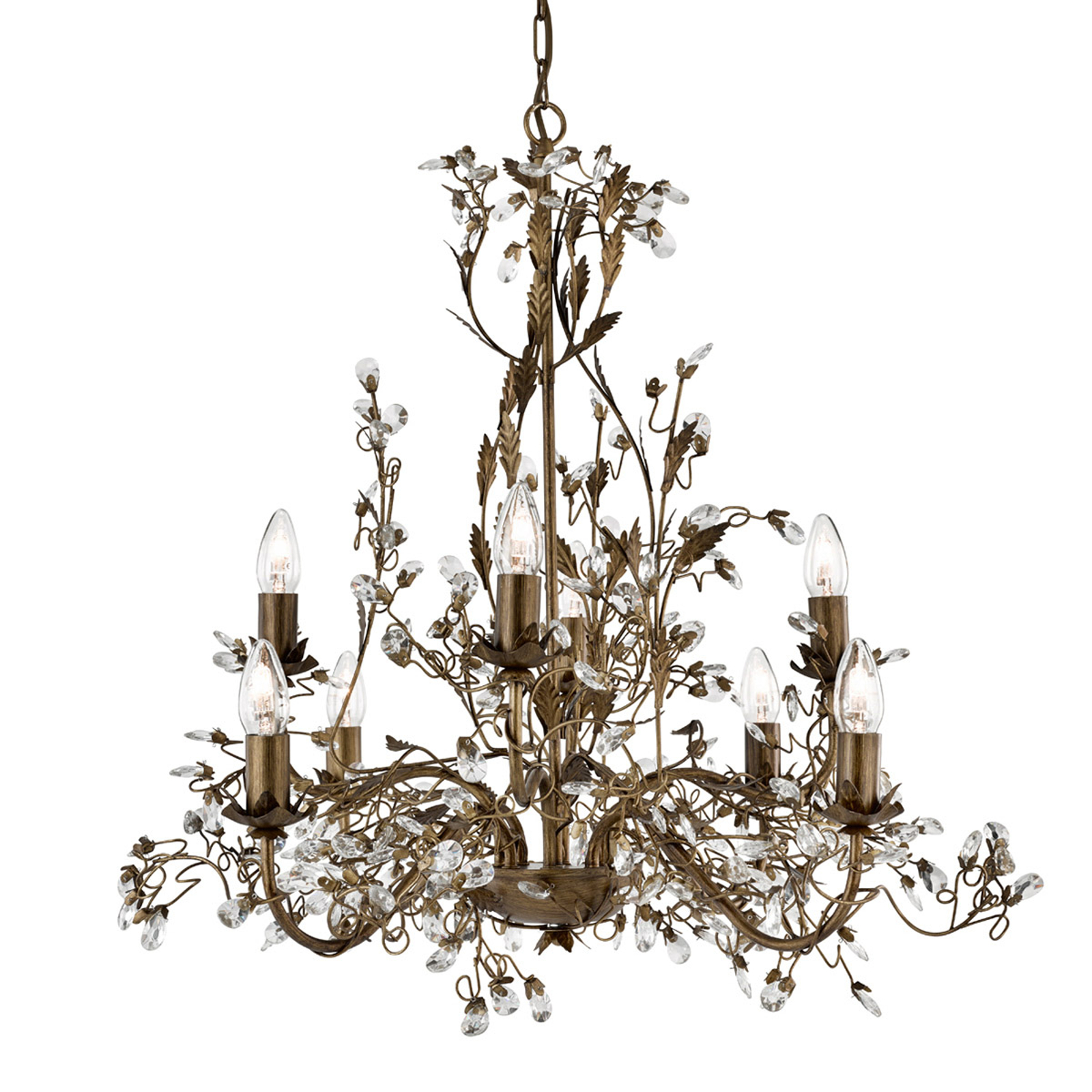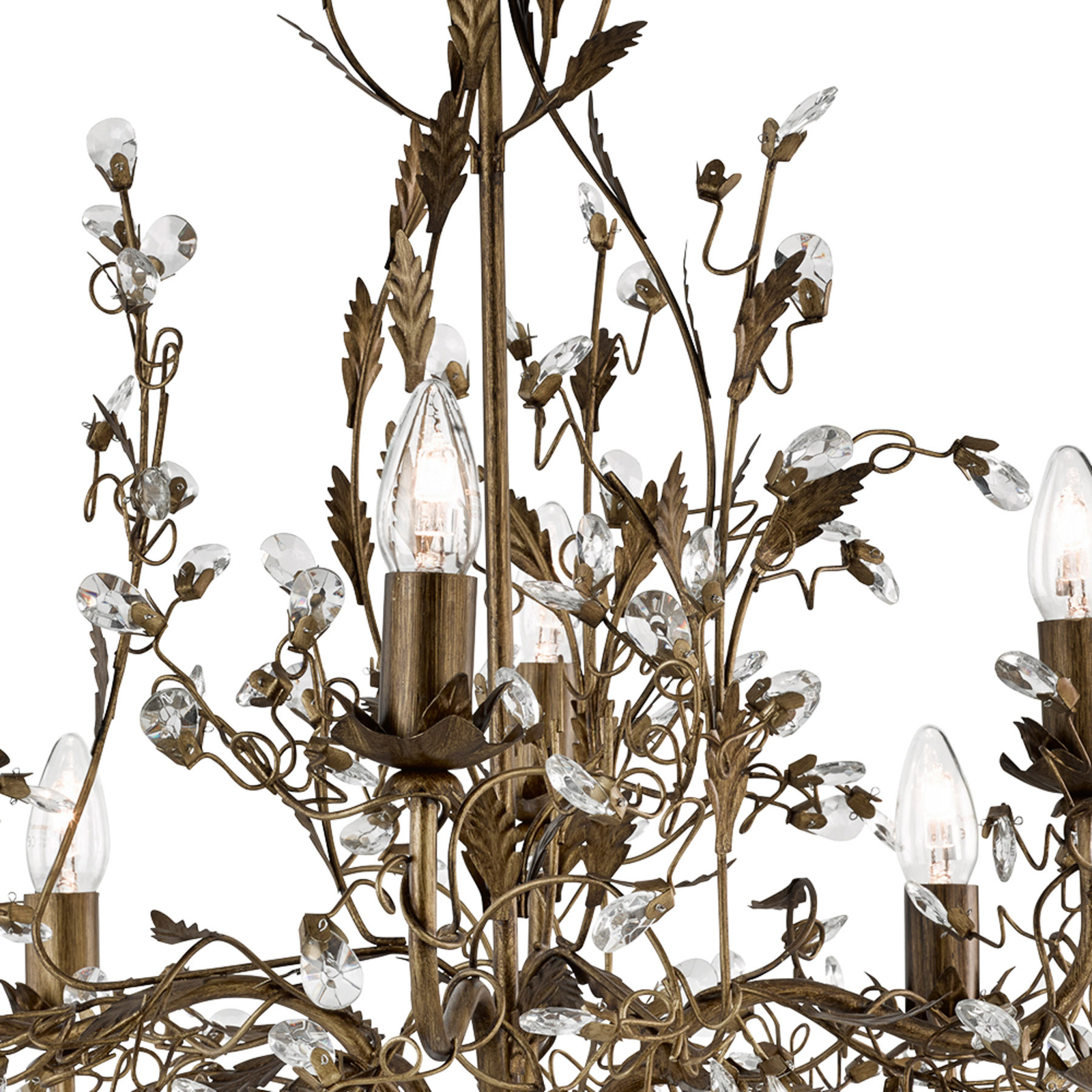 Mahtipontinen ilme ja tehokas valaistus tekevät kahdeksanlamppuisesta Almandite-kattokruunusta todellisen mestariteoksen. Tämä metallista ja kristalleista valmistettu valaisin on muotoiltu kauniisti Firenzeläistyyliin. Valaisimen värimaailma henkii kattokruunun tyylikästä luonnetta. Kullanruskea maalipinta antaa täydellisen kontrastin kirkkaille kristalleille. Nämä on sijoitettu oksan kaltaisten varsien päähän kukkien ja nuppujen muotoisina. Villisti kahdeksan kynttilän ympärille sijoitetut ja kaikkiin suuntiin osoittavat varret ovat kuin kauniin kasvin oksia. Koko komeus on ripustettu kauniilla ketjulla, joka loistaa valaisimen tavoin tyylikkäästi kullanruskeana. Kynttilän muotoiset E14-hehkulamput viimeistelevät kattokruunun herraskaisen vaikutelman. Almandite vakuuttaa niin visuaalisesti kuin valovoimallaan.