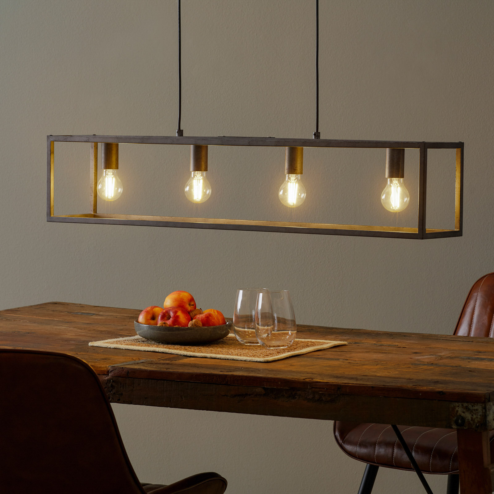 Perpendillumina-riippuvalaisin sopii erinomaisesti pöydän yläpuolelle oleskelutiloihin. Valaisimessa on antiikkihopean sävyinen pinta ja avoin rakenne. Valaisimeen sopivat erinomaisesti koristeelliset lamput, kuten rustiikkilamput. Metallivarsista muodostuvan varjostimen sisällä on neljä lamppua.